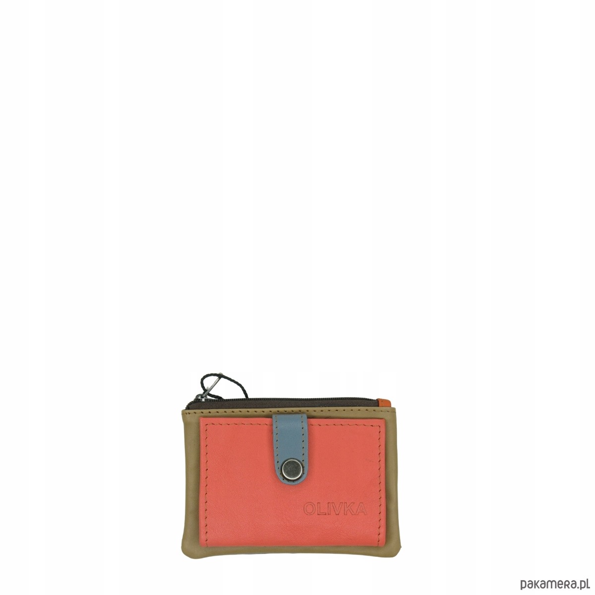 Portfel portfelik mały skórzany miejsce na bilon karty eko OLIVKA