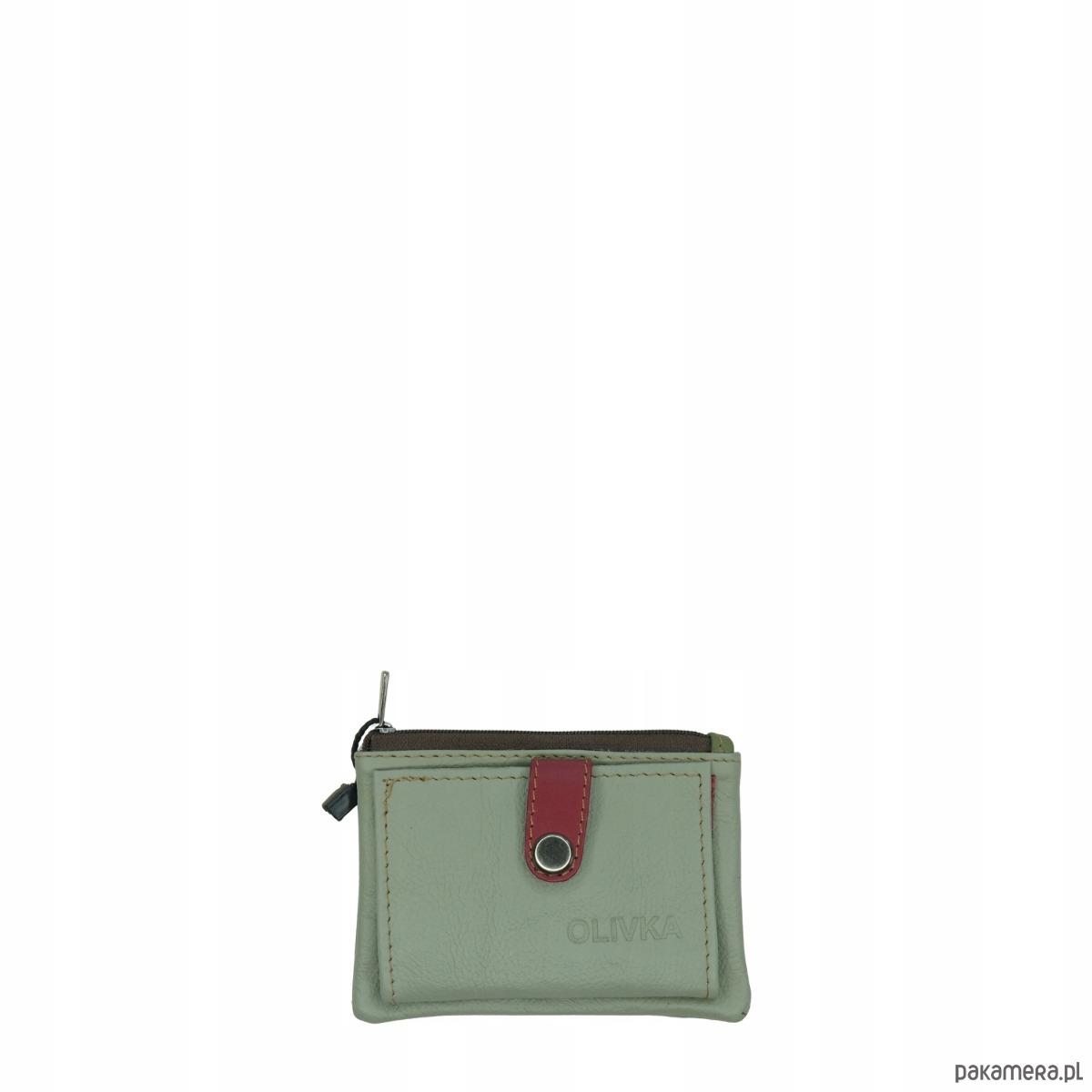 Portfel portfelik mały skórzany miejsce na bilon karty eko OLIVKA
