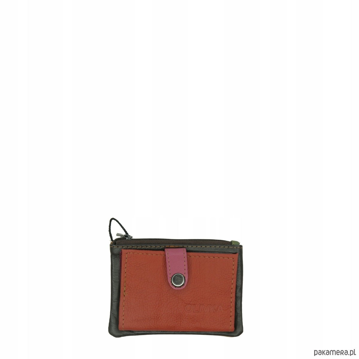 Portfel portfelik mały skórzany miejsce na bilon karty eko OLIVKA