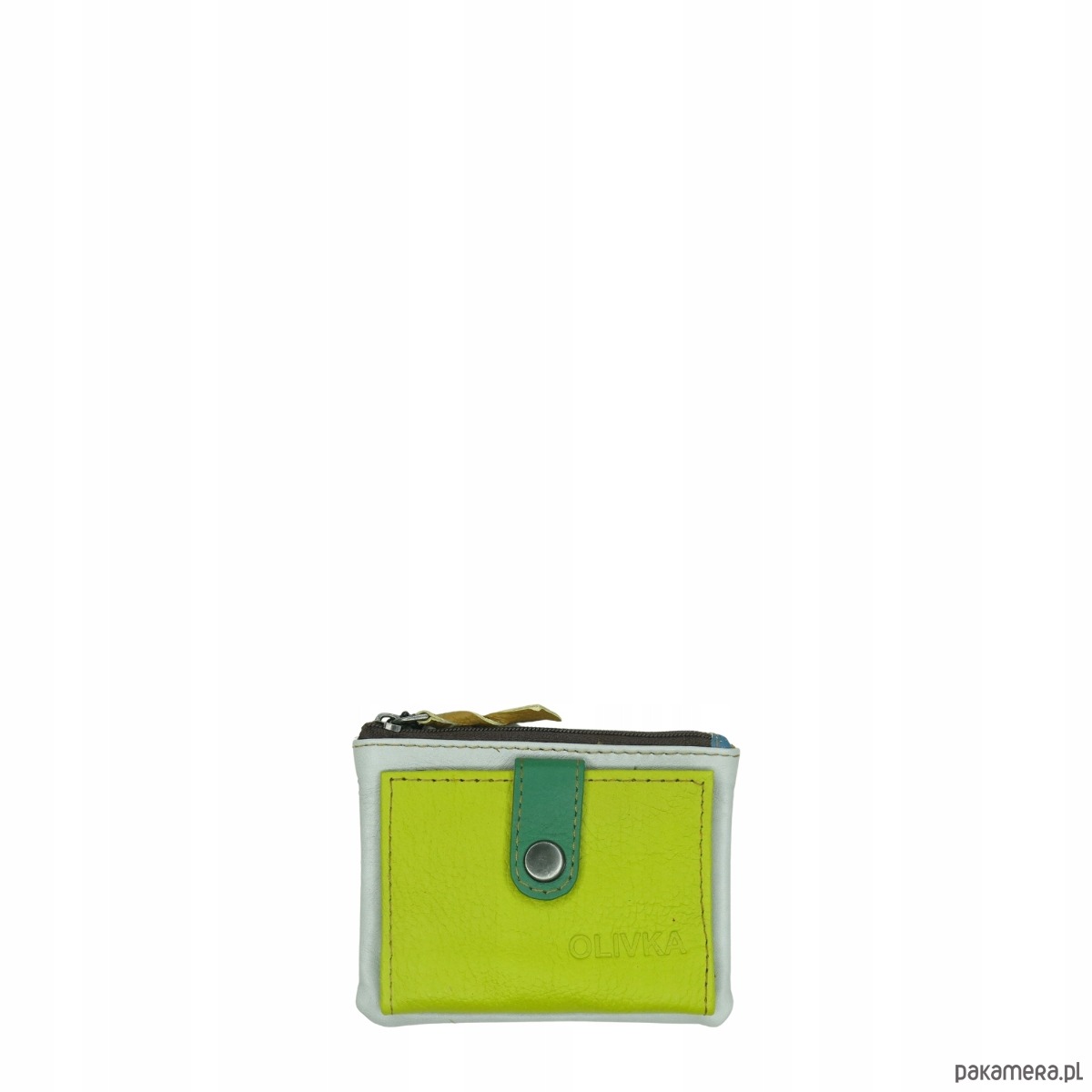Portfel portfelik mały skórzany miejsce na bilon karty eko OLIVKA