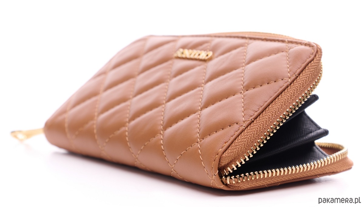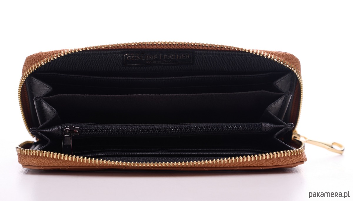 Elegancki portfel ze skóry naturalnej, pikowanej, duża ilość przegródek zapewnia bardzo dobrą organizację.