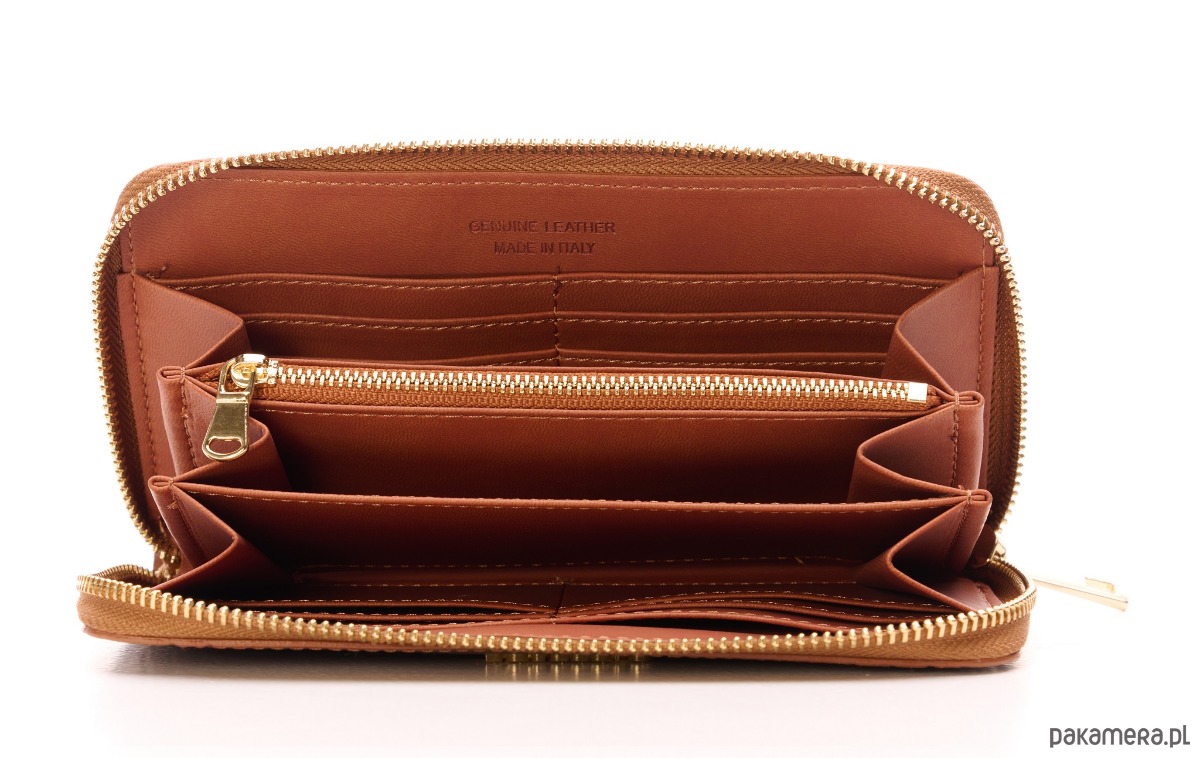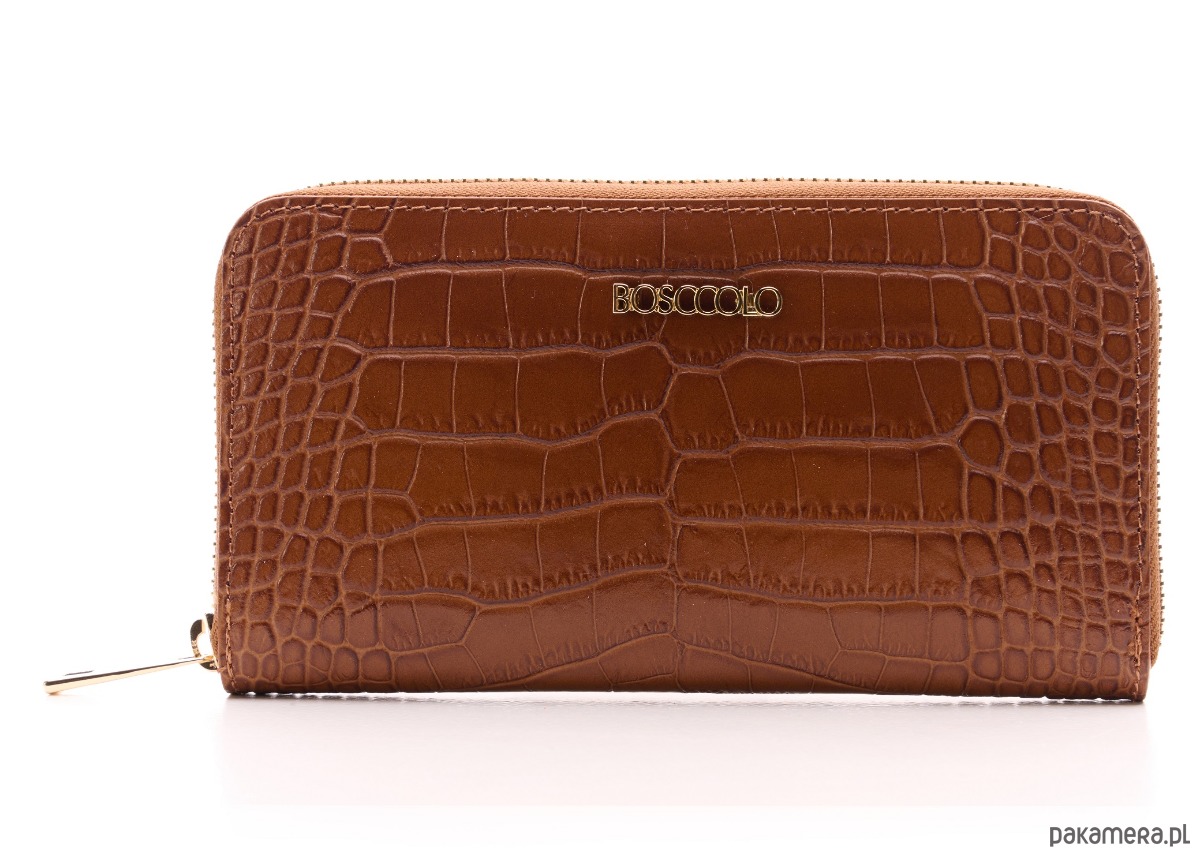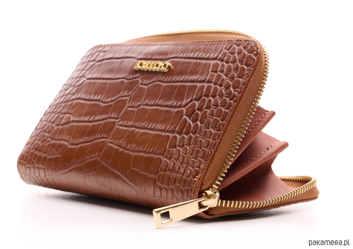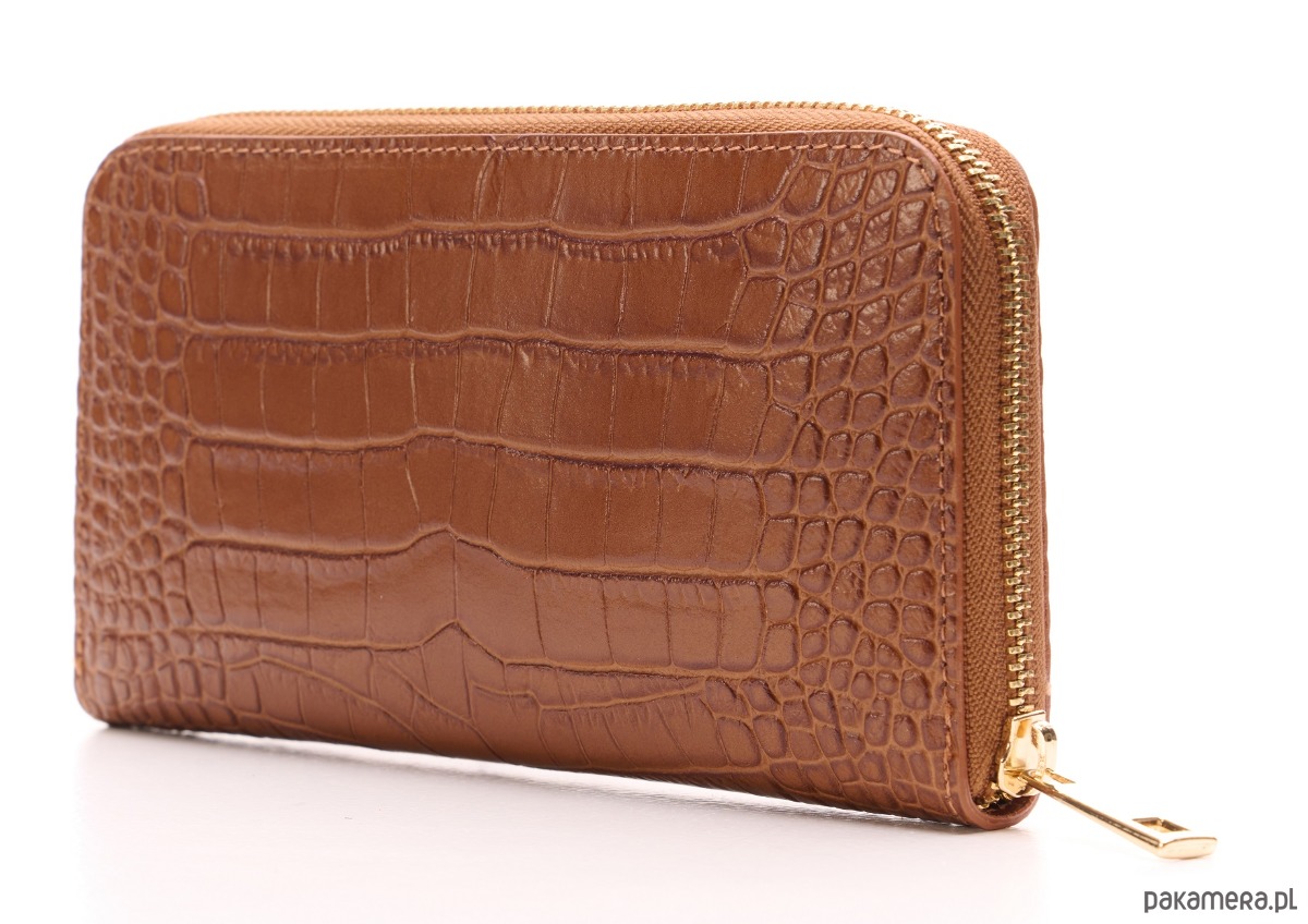 Elegancki portfel ze skóry naturalnej o fakturze krokodyla, duża ilość przegródek zapewnia bardzo dobrą organizację.