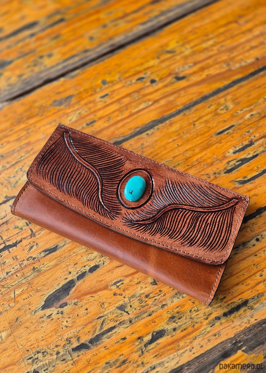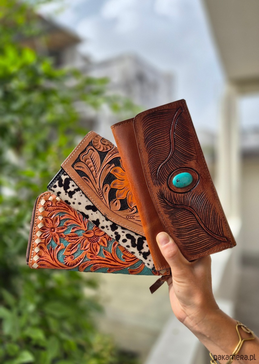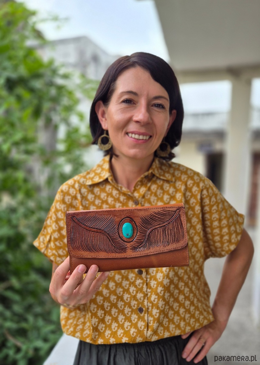 Unikatowy portfel, stworzony ręcznie w Indiach. Wykonany z wysokiej jakości skóry, która z czasem nabiera charakteru i naturalnego połysku. Motywy rzeźbione na powierzchni portfela podkreślają indywidualność i ręczne wykonanie, każdy egzemplarz jest niepowtarzalny. Kieszenie i przegrody są zaprojektowane z myślą o maksymalnej funkcjonalności, mieszcząc karty, banknoty i monety. Produkt odznacza się trwałością i dbałością o szczegóły, co czyni go idealnym dodatkiem na lata.