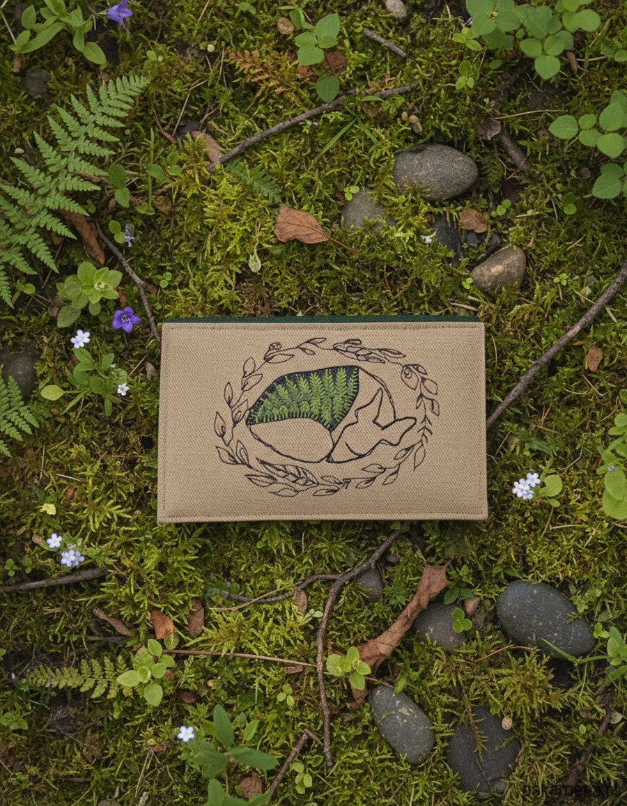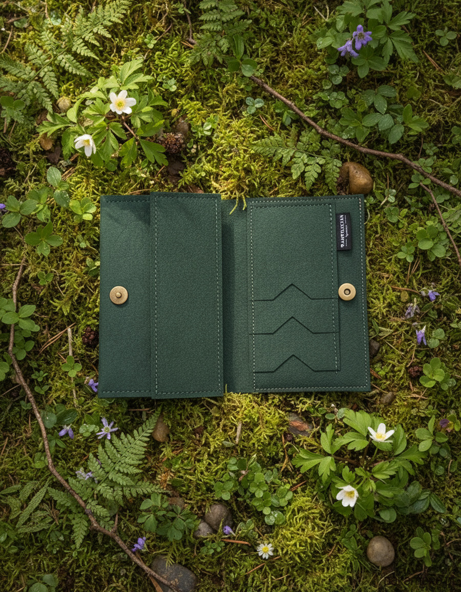 Haftowany portfel wykonany z impregnowanego papieru i bawełny. Jest 100% wegański.