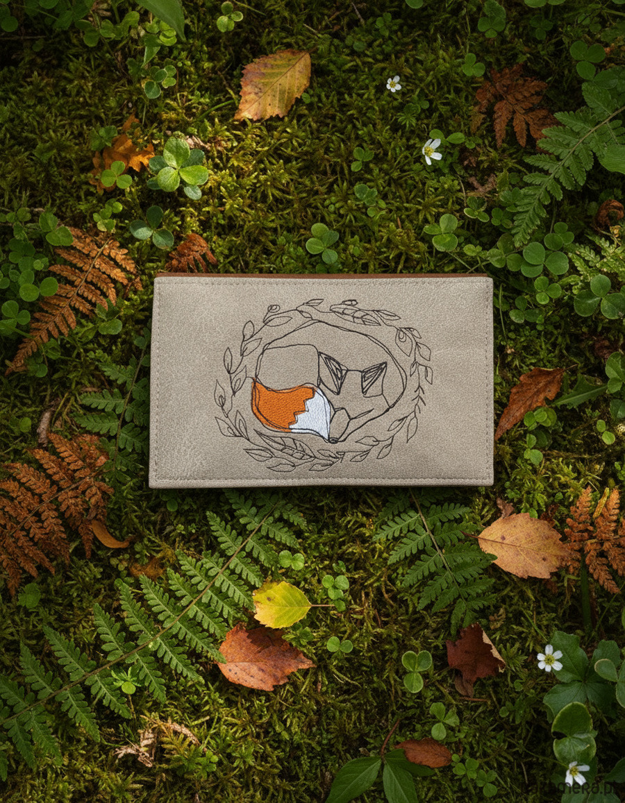 Haftowany portfel wykonany z impregnowanego papieru i bawełny. Jest 100% wegański.