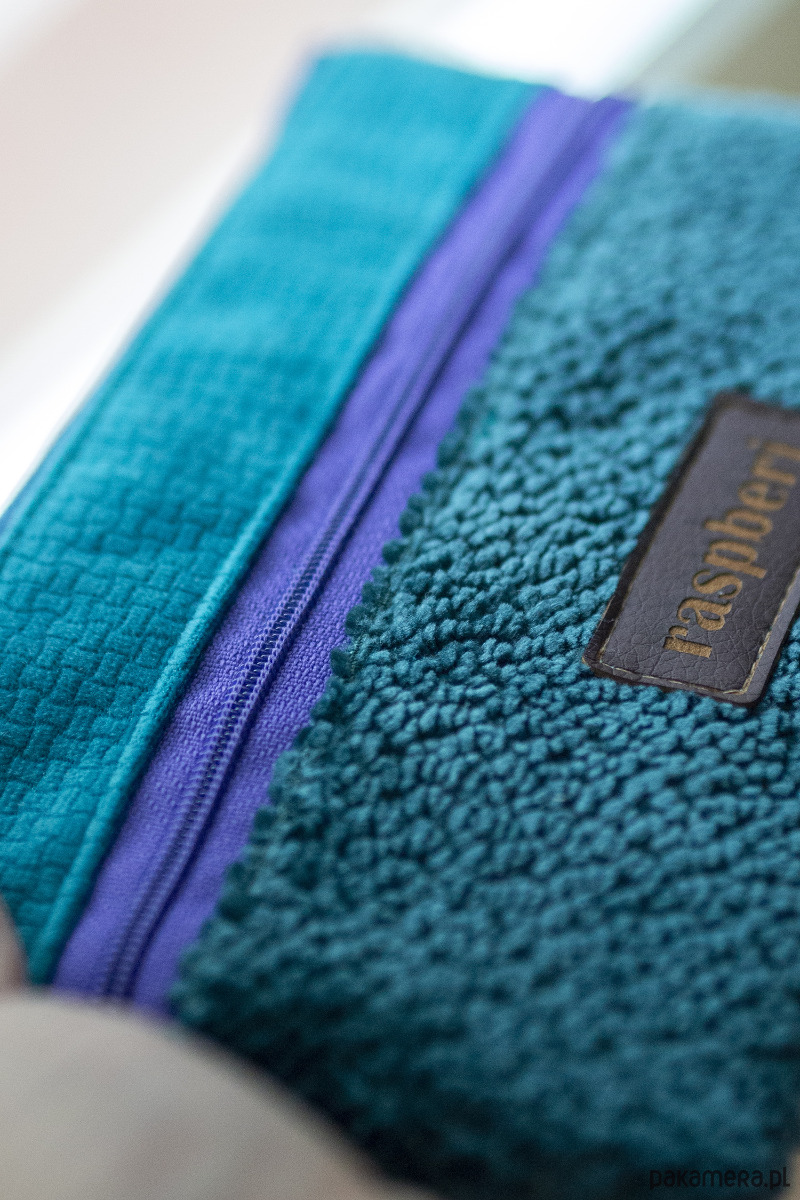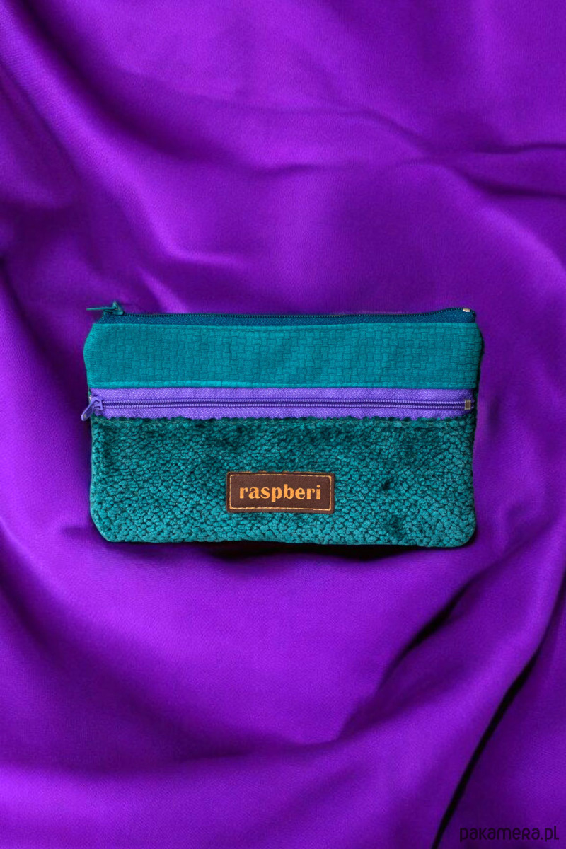 Prosty wodoodporny portfel wykonany z turkusowego weluru.