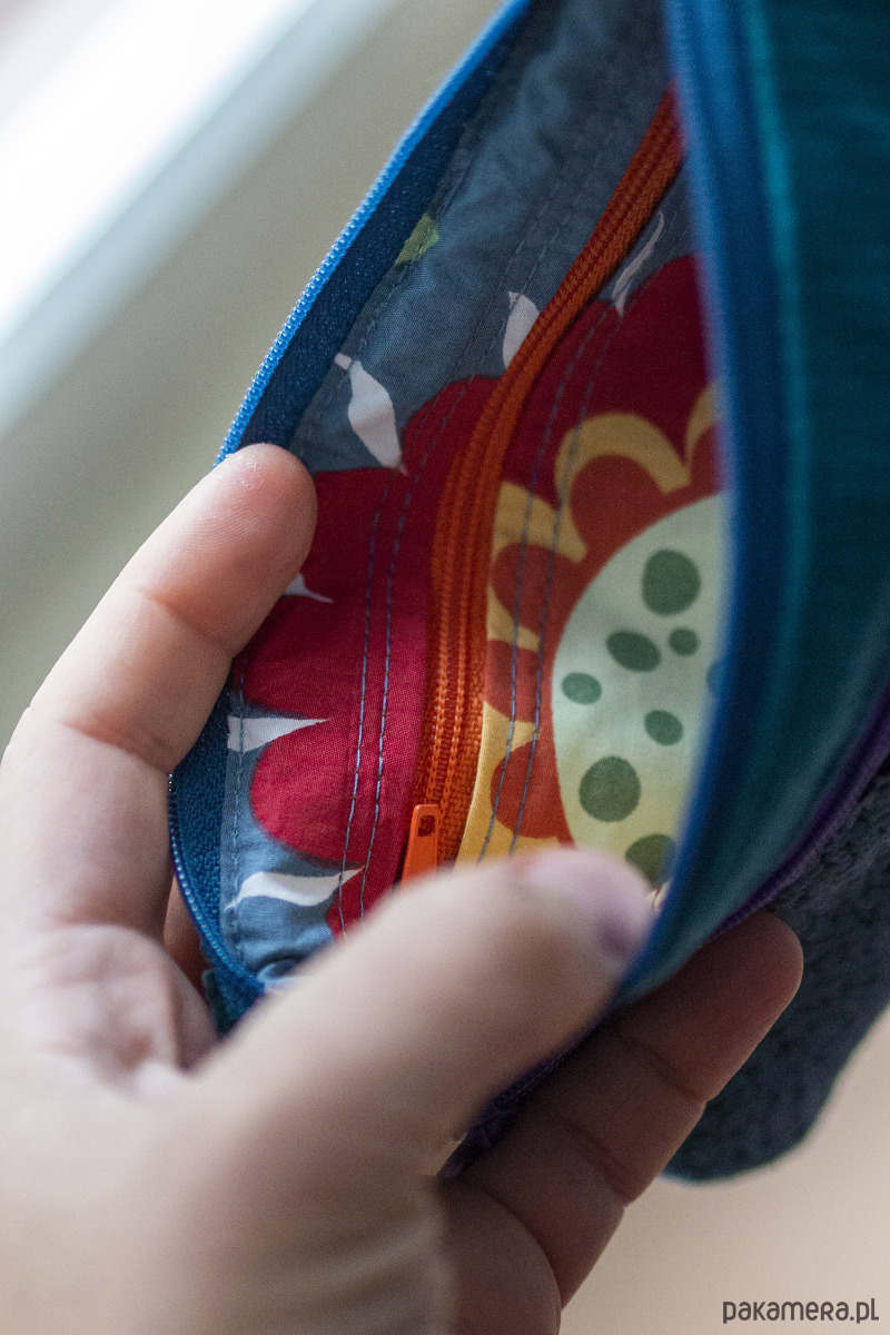 Idealny na karty płatnicze oraz pieniądze. Zapinany na suwak, z przodu kieszonka na drobne, w środku bawełniana podszewka i kieszonka na suwak.