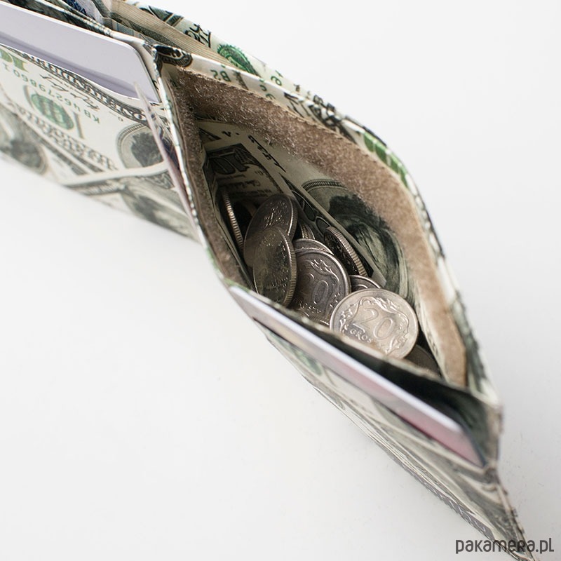 Supercienki portfel z papieru syntetycznego TYVEK. Jest bardzo pojemny i wytrzymały. Bez problemu zmieści 8 kart, dowód osobisty i prawo jazdy. Posiada 3 osobne przegrody: na banknoty, bardzo ważne karteczki lub dowód osobisty i jedna zapinaną na rzep kieszonkę na monety.