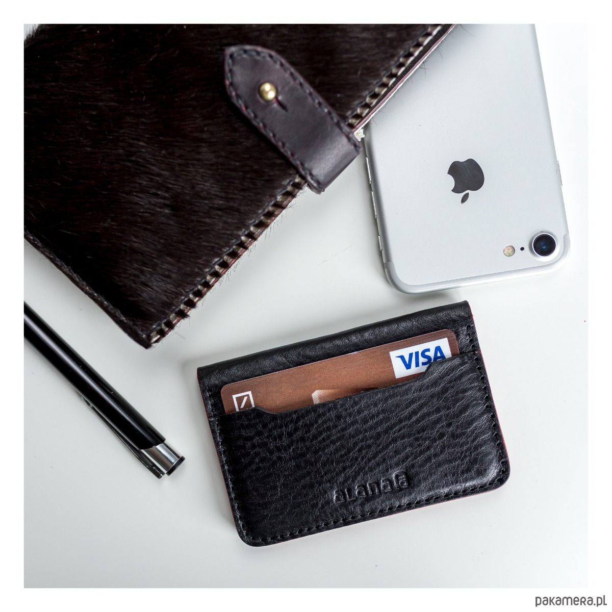 Skórzany mini portfel na karty w kolorze czarnym to alternatywa dla tradycyjnych portfeli. Wymiary pozwalają na noszenie w każdej kieszeni lub małej torebce. Posiada 5 przegródek na karty.