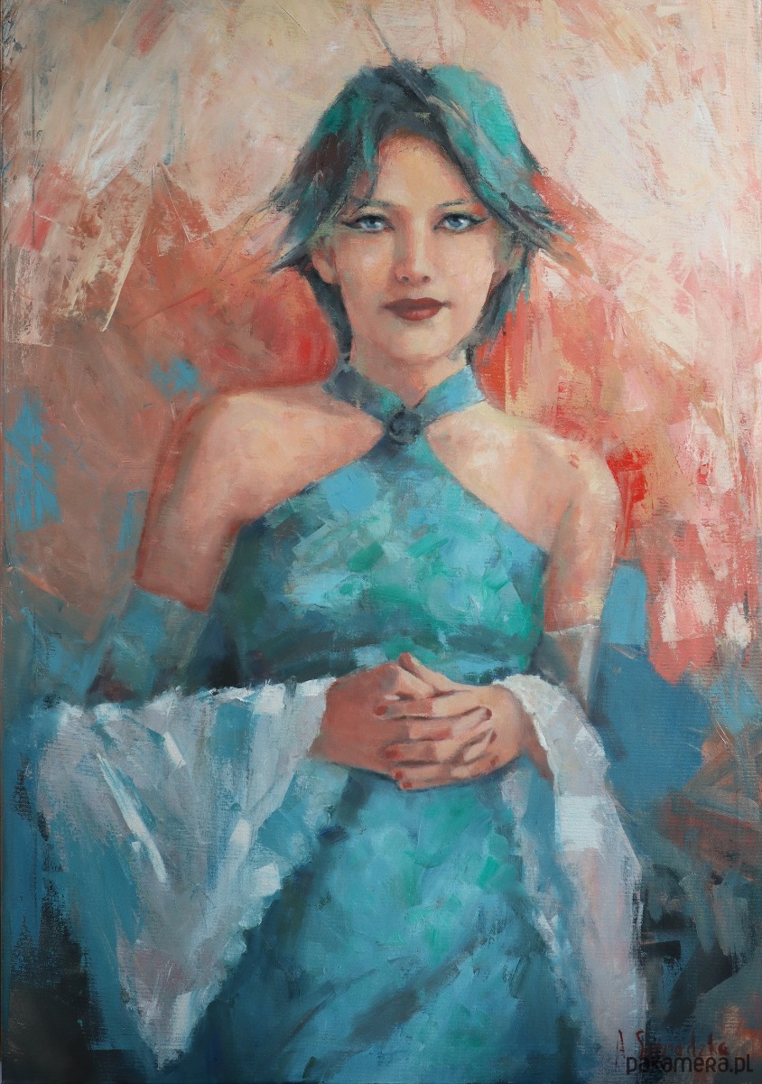 Oryginalny prezent z klasą - portret ręcznie malowany farbami olejnymi na podobraziu 50x70 cm, na podstawie nadesłanego zdjęcia *. Tło, ubiór i aranżacja do uzgodnienia.