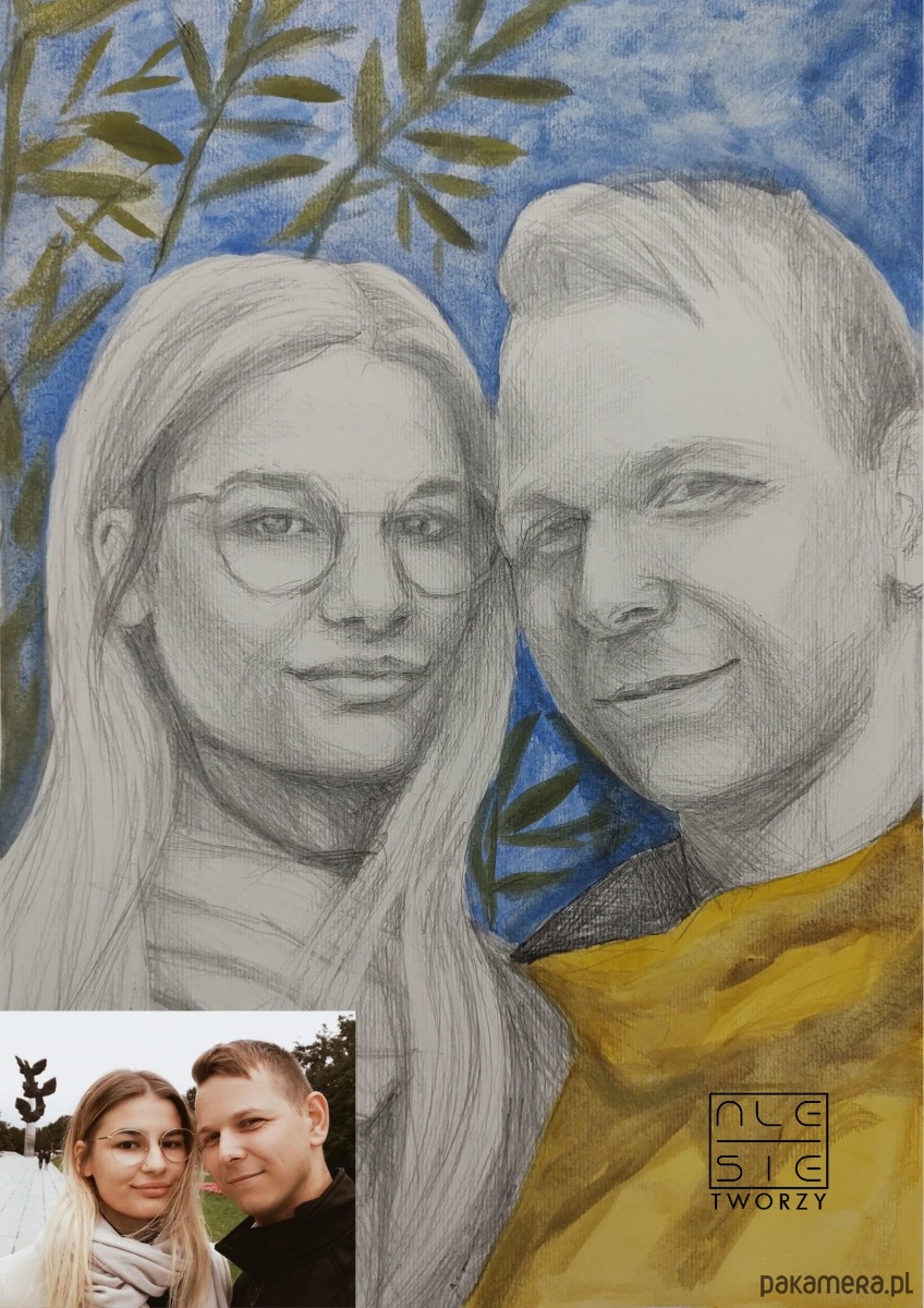 Oryginalny prezent z klasą - podwójny portret ręcznie rysowany na zamówienie na podstawie nadesłanego zdjęcia *.
