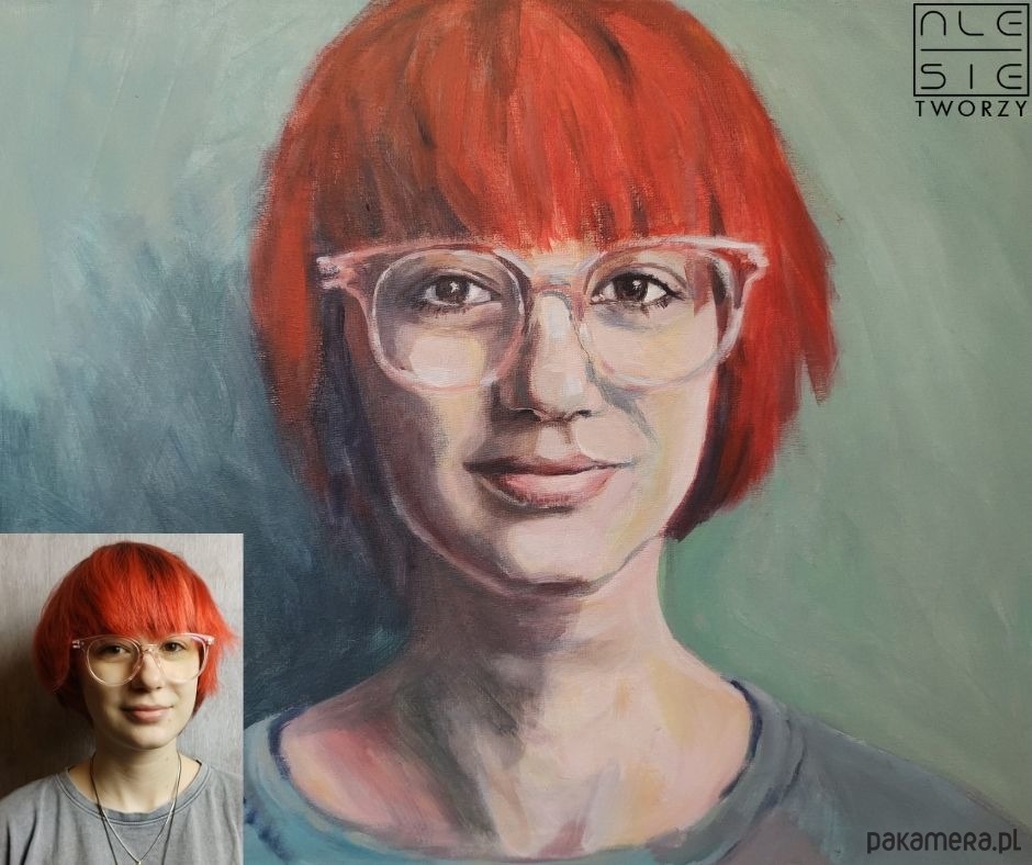 Oryginalny prezent z klasą - portret ręcznie malowany farbami akrylowymi na podobraziu, w pionie lub w poziomie, pojedynczy, na podstawie nadesłanego zdjęcia *.