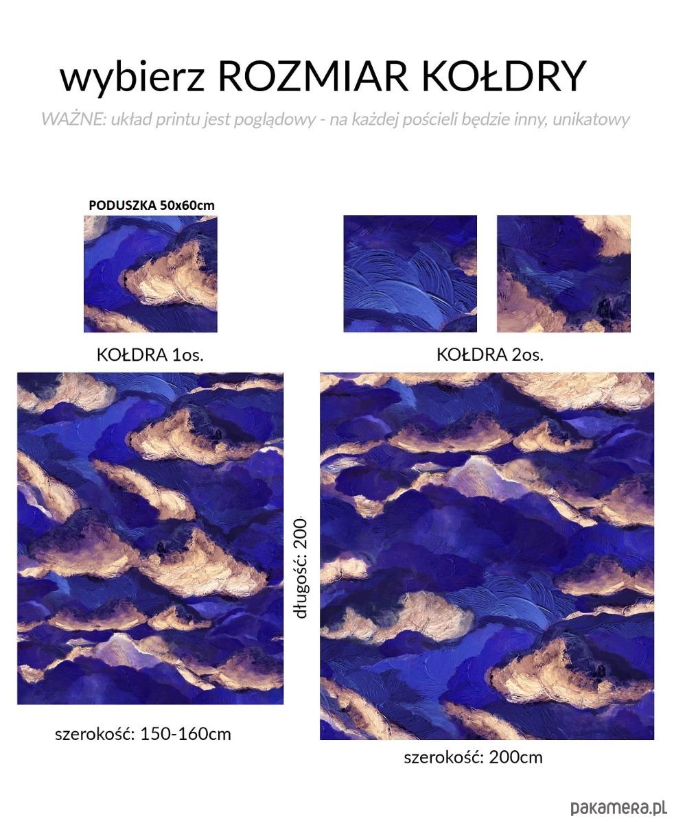 POŚCIEL 1 i 2os. autorski print kobaltowe CHMURY na niebie 100%BAWEŁNA premium