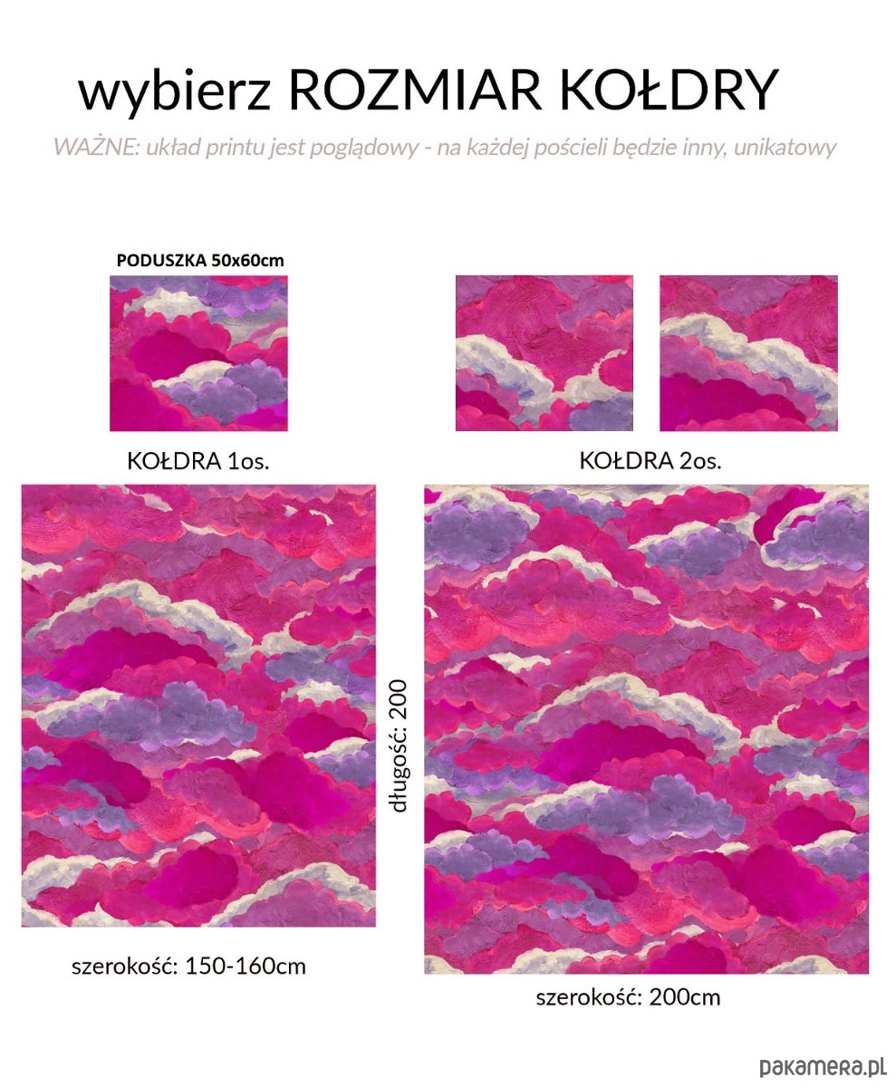 POŚCIEL 1 i 2os. autorski print różowe CHMURY na niebie 100%BAWEŁNA premium