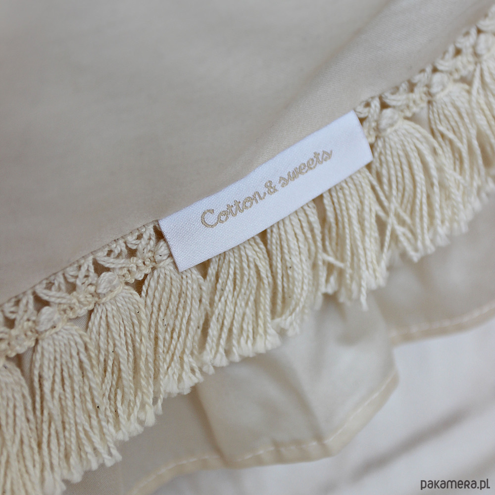 Kolekcja Boho wykonana jest z naturalnej tkaniny bawełnianej. Materiał nie jest barwiony, zachowuje naturalny kolor bawełny. Tkanina ta nie jest poddawana obróbce chemicznej, dlatego bawełniane łuski mogą być widoczne. Nie stanowi to wady i nie stwarza żadnego zagrożenia. Jest to walor produktu wykonanego w zgodzie z naturą.