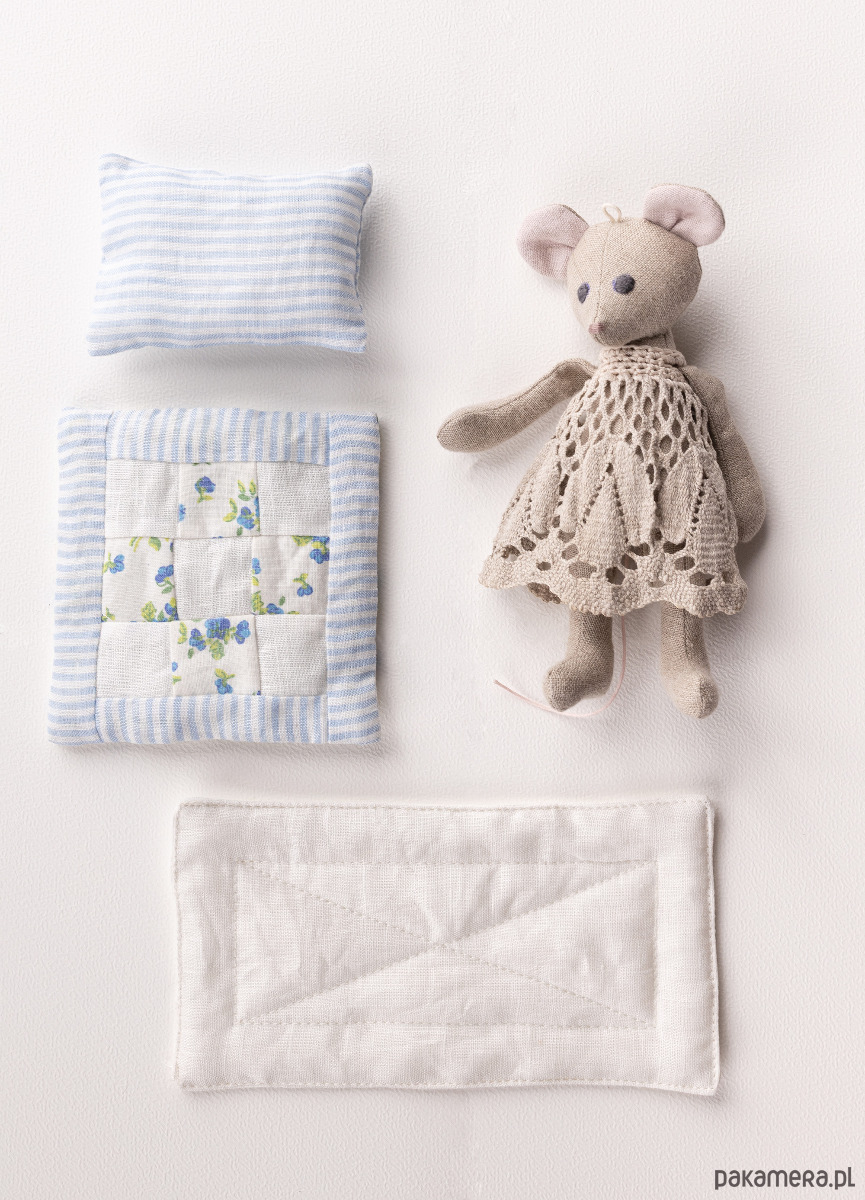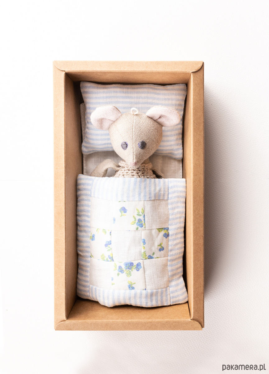 W zestawie znajdziesz miękki materacyk, podusię i kołderkę w uroczym patchworkowym stylu, idealnie pasujące do pudełka, czyli domku Lulu Lali.