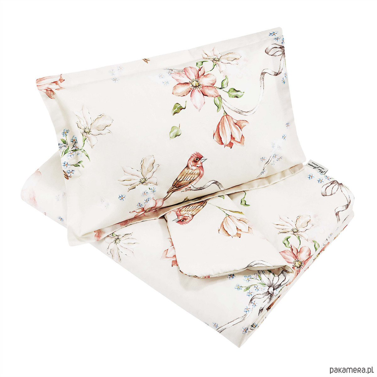 Komplet pościeli dziecięcej Bird Melody to elegancki i praktyczny wybór do łóżeczka, który łączy wygodę, bezpieczeństwo i subtelną estetykę. Miękka bawełna perkalowa zapewnia maluchowi spokojny i komfortowy sen, a delikatny wzór ptaszków wprowadza przytulną i harmonijną atmosferę w pokoju dziecka.