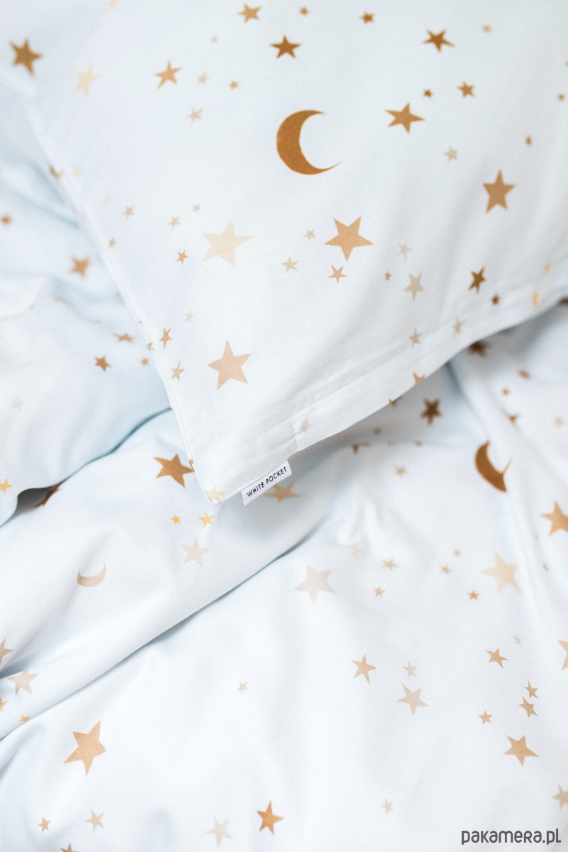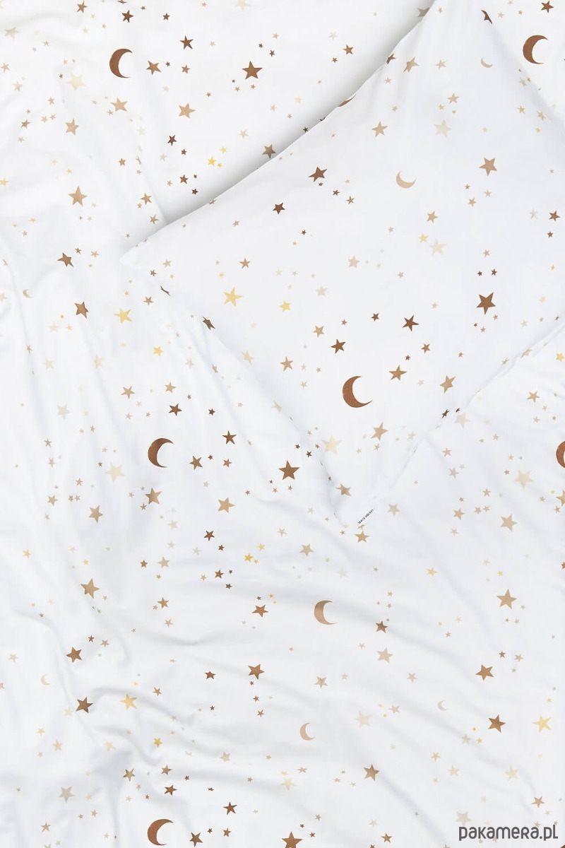 Dla marzycieli, którzy uwielbiają widok rozgwieżdżonego nieba. Poprzez różne nasycenie koloru (od bladego żółtego aż do brązowego) gwiazdki sprawiają wrażenie lekko migających. Pościel gwiazdki została uszyta z utkanej w Polsce, zmiękczanej satyny bawełnianej. Jest niesamowicie miękka, przewiewna i przyjemna dla skóry.