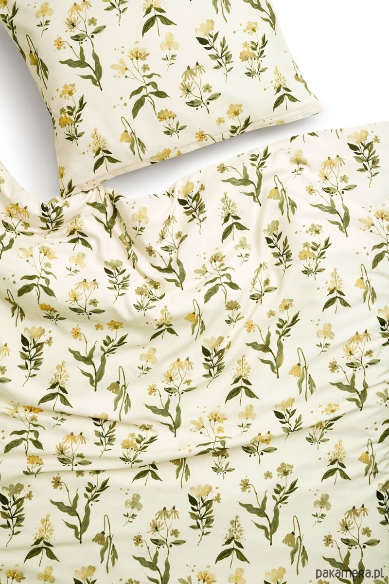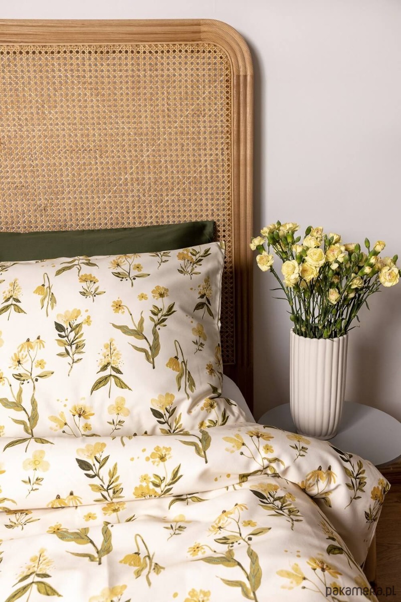 Pościel w żółte kwiaty została wykonana w 100% z bawełny. Zaprojektowana i uszyta w całości w Polsce.