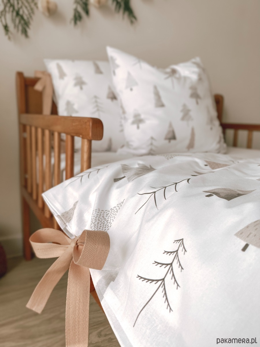 Pościel świąteczna dla dzieci 140x200 cm / 70x80 cm - choinki scandi