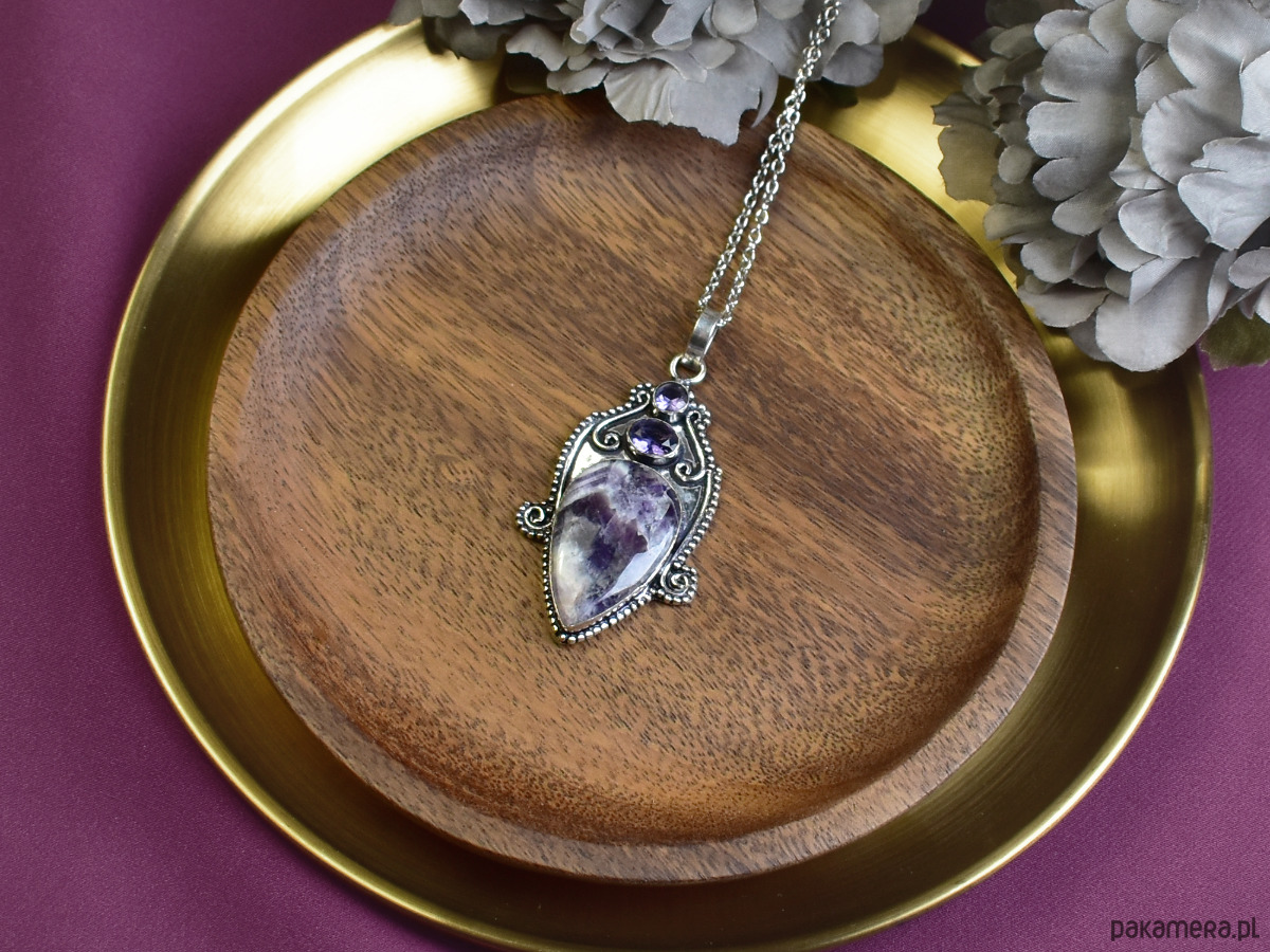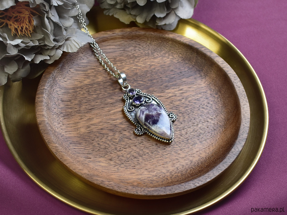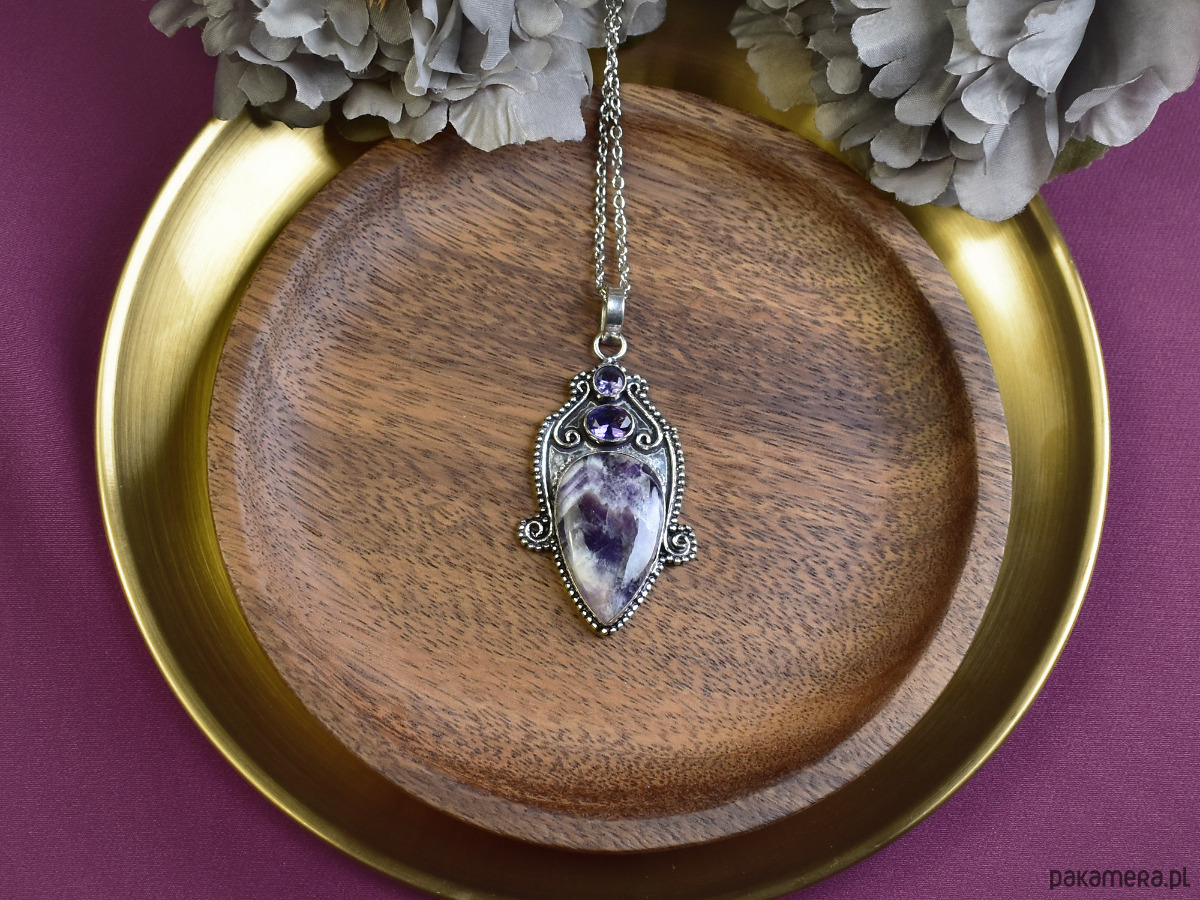 Posrebrzany ozdobny wisiorek z ametystem #629