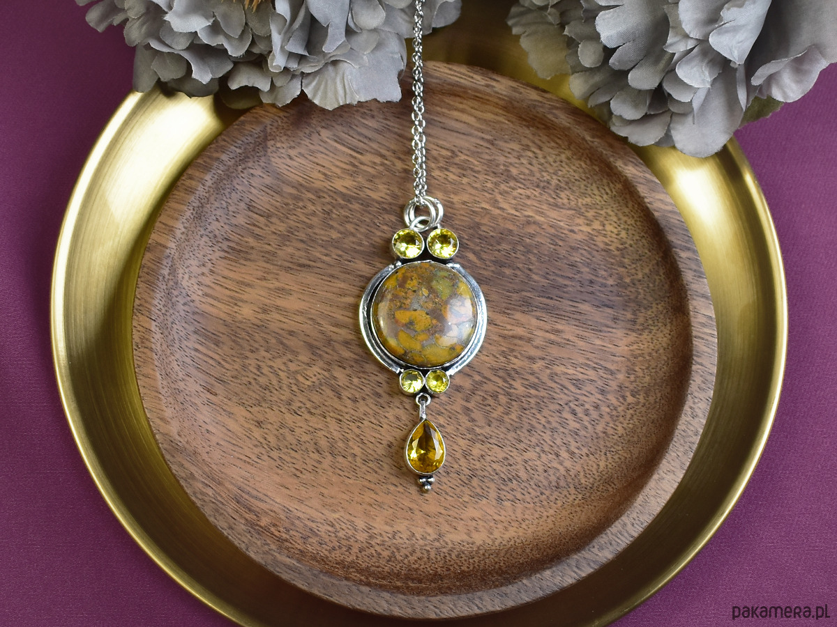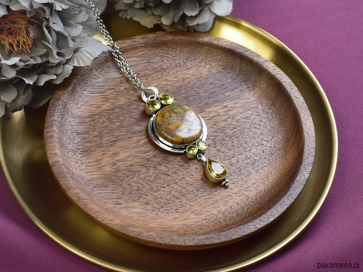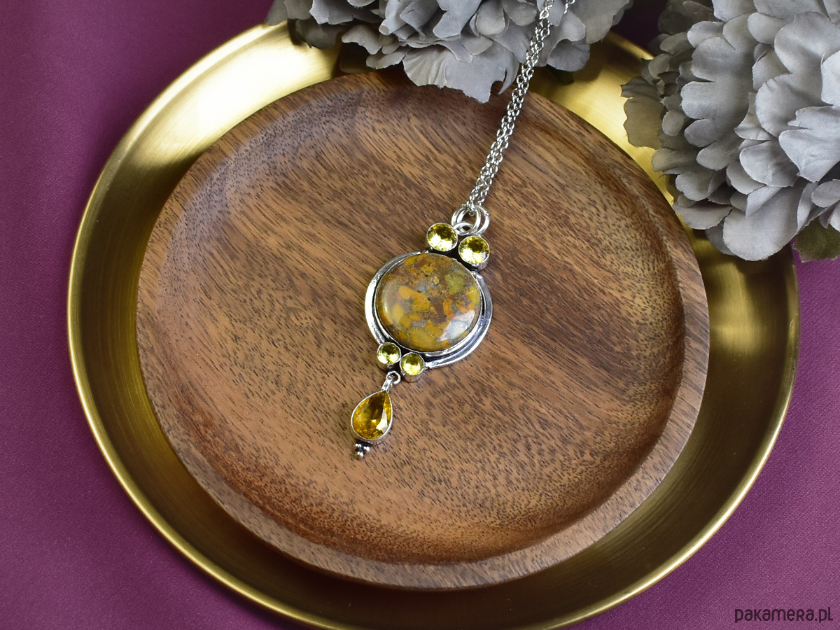 Posrebrzany ozdobny wisiorek z jaspisem i cytrynem #637