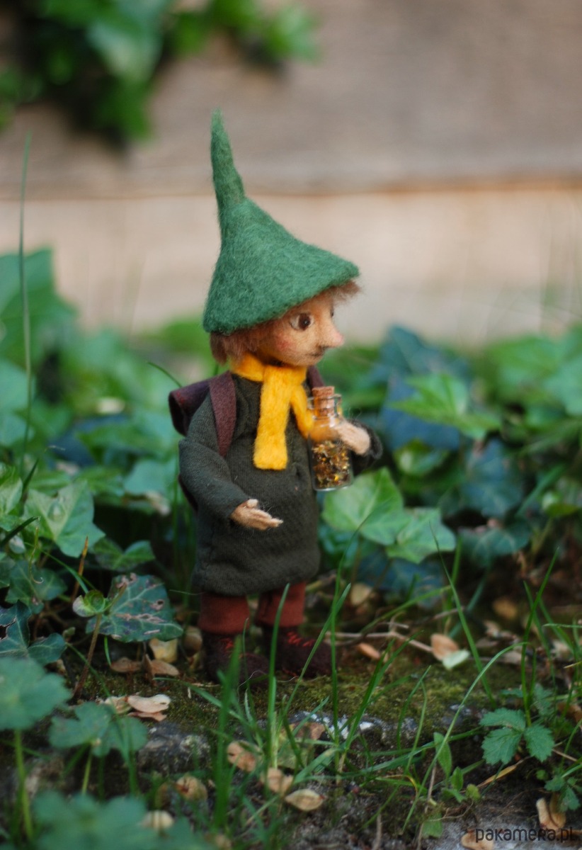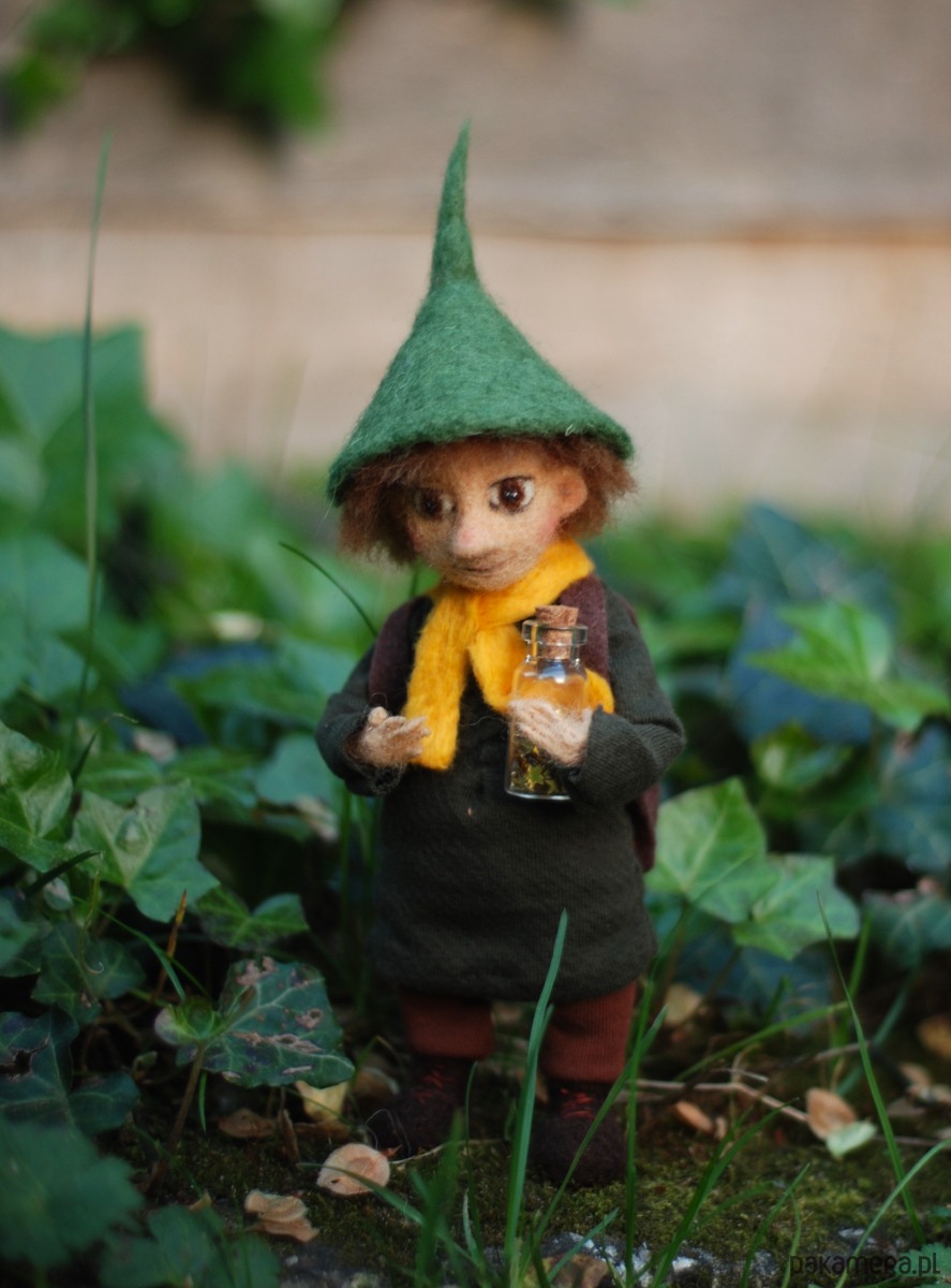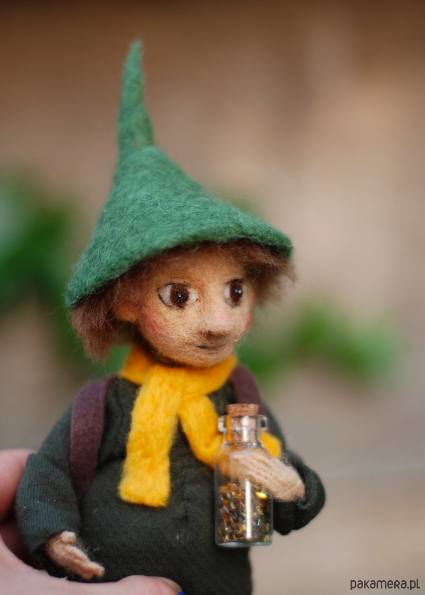 Postać wędrowcy- wykonane metodą filcowania na sucho z wełny Merynos.