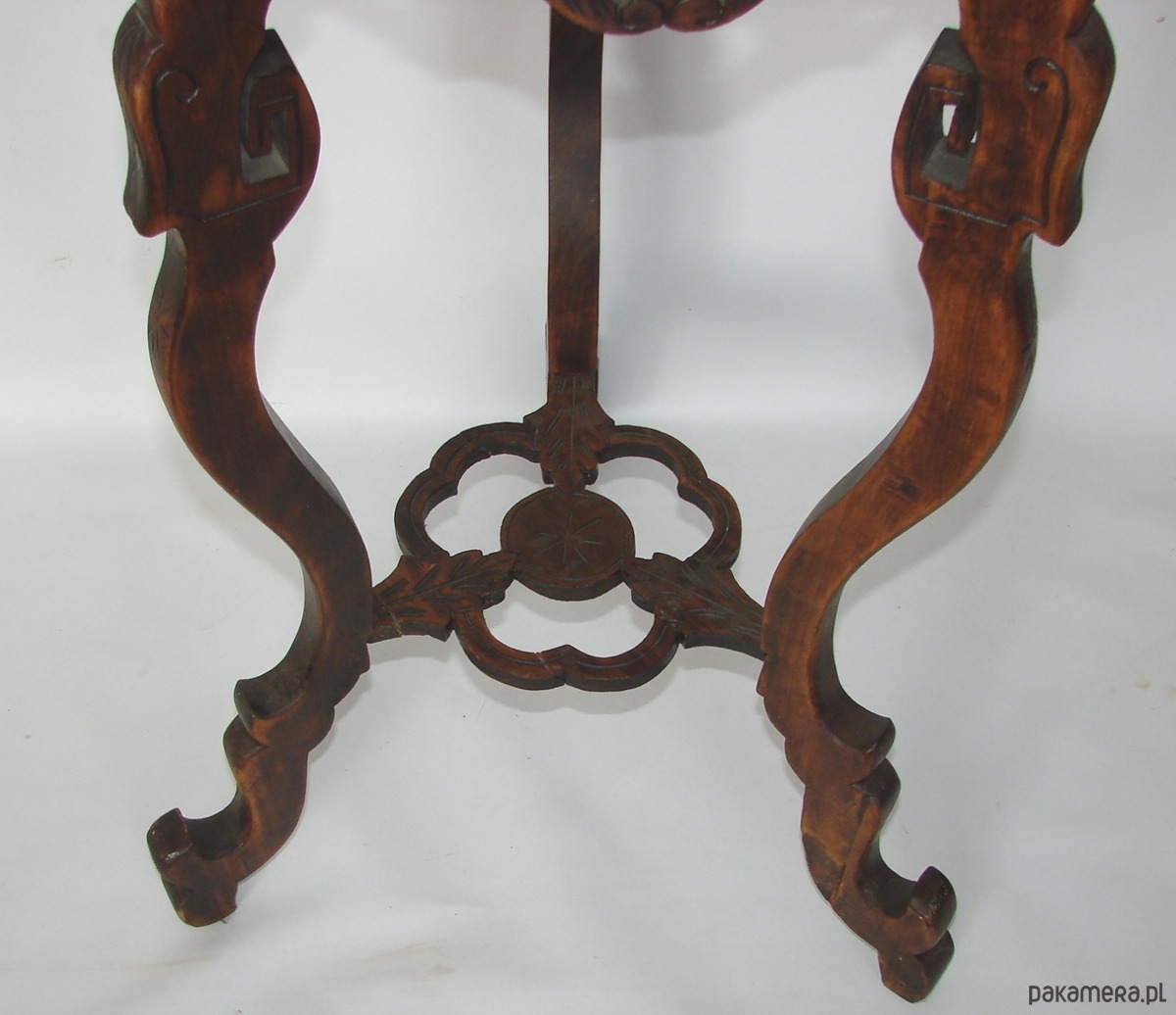 Elegancki postument o dekoracyjnej, rzeźbionej formie, zwieńczony masywnym marmurowym blatem. Klasyczny element wyposażenia wnętrz, który doskonale sprawdzi się jako kwietnik, podstawa pod rzeźbę, lampę lub inny obiekt dekoracyjny.