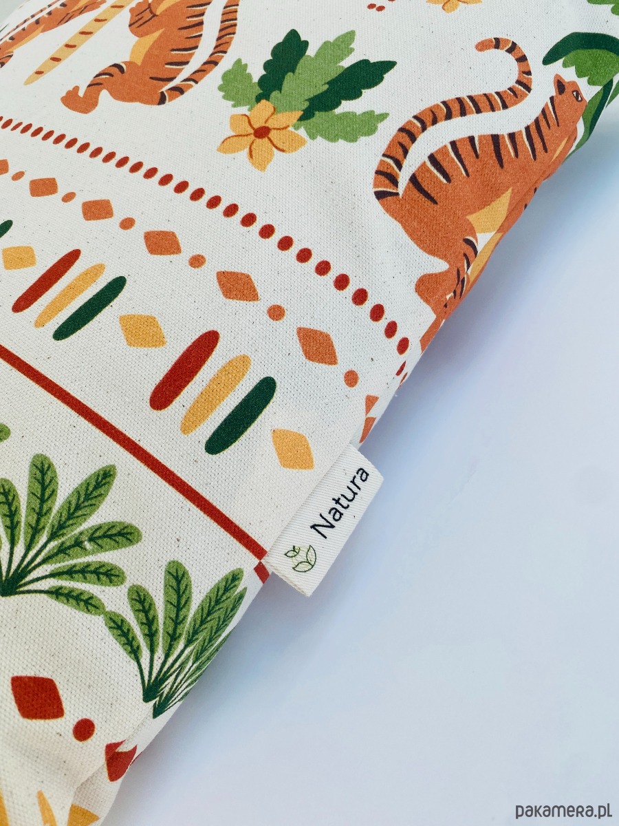 Poszewka na poduszkę wykonana z wysokiej jakości naturalnej bawełny, będąca częścią najnowszej kolekcji Barbados. W rozmiarze 40 x 40 cm, wyposażona w praktyczny plastikowy zamek, który ułatwia codzienne użytkowanie. Tkanina o gramaturze 250 gsm zadrukowana farbą wodną najnowszą metodą druku wielkoformatowego, co zapewnia trwałość i ekologiczne podejście.