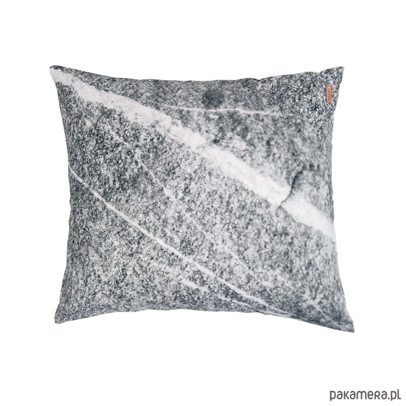 Poszewka na poduszkę z kolekcji Grey Granite. Wzór szarego granitu z jasnym użyłowaniem. Poszewka ma wszyty wysokiej jakości zamek błyskawiczny.