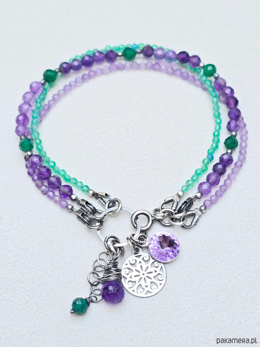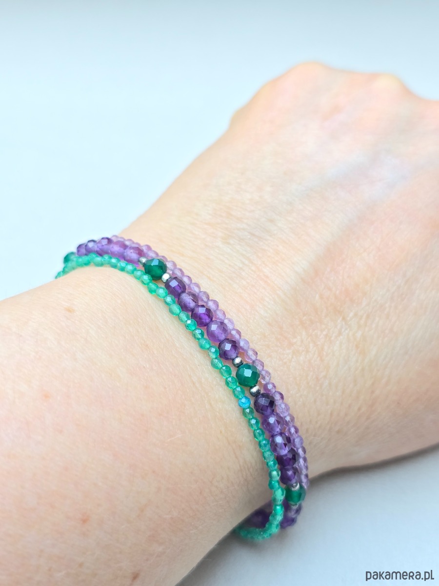 Potrójna Bransoletka z Ametystem i Zielonym Onyksem
