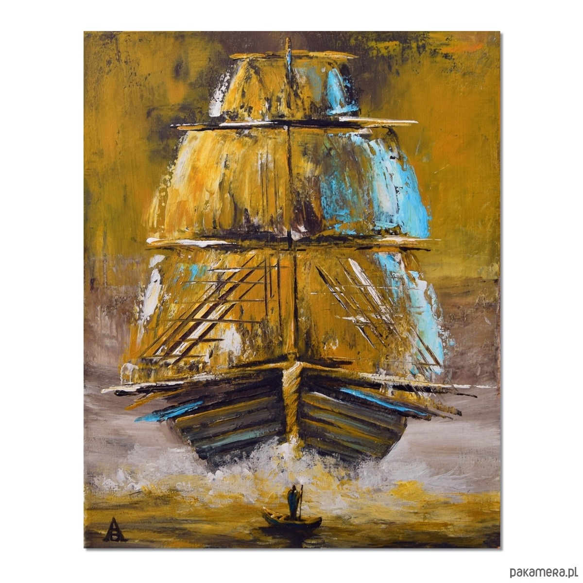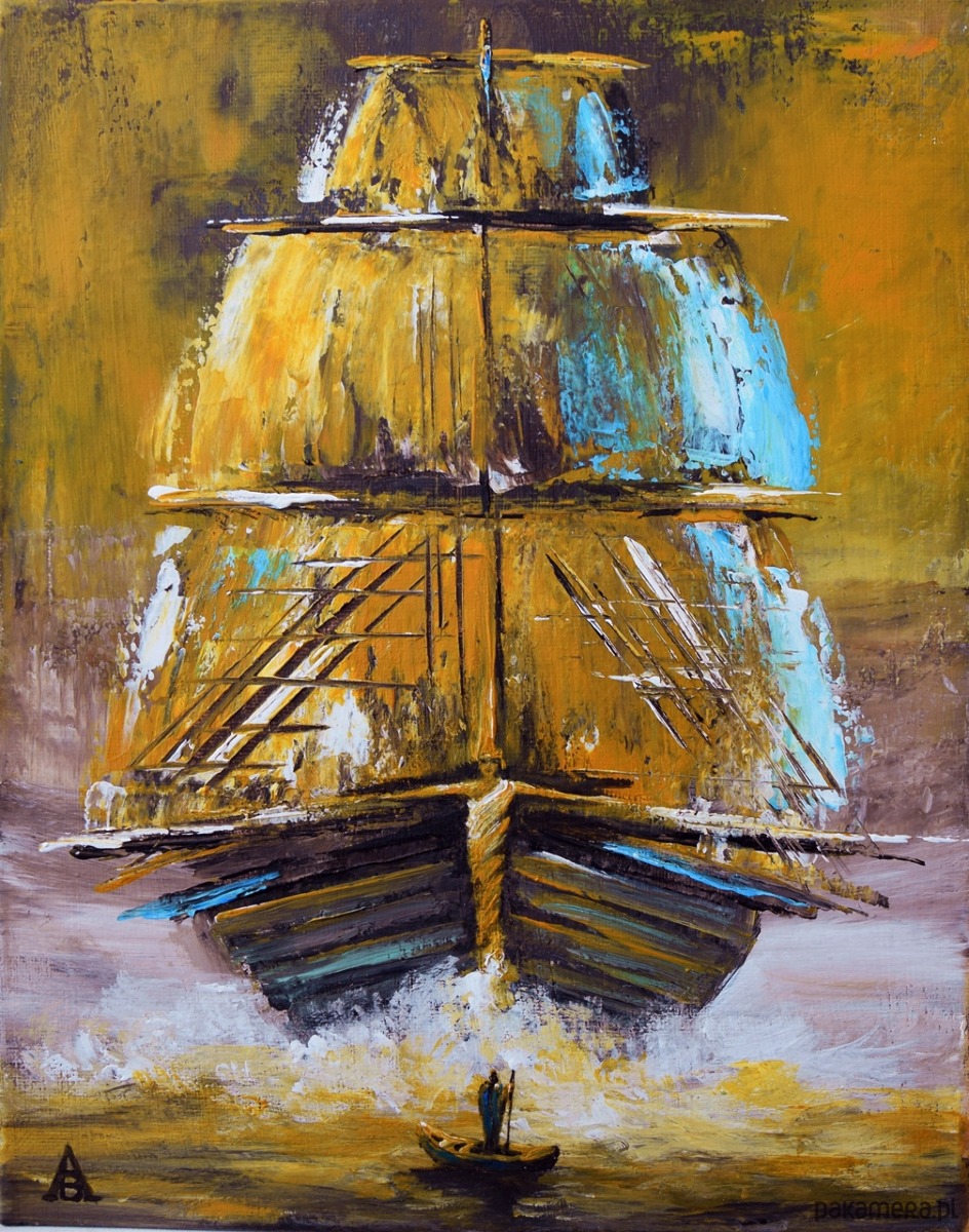 Oryginalny obraz malowany w technice akrylowej na płótnie naciągniętym na blejtram (drewnianą ramę) o grubości ok. 1,5 cm. Rozmiar - 24/30 cm. Obraz pokryty jest werniksem dla ochrony przed wilgocią. Sygnowany. Boki zamalowane w tonacji całości.