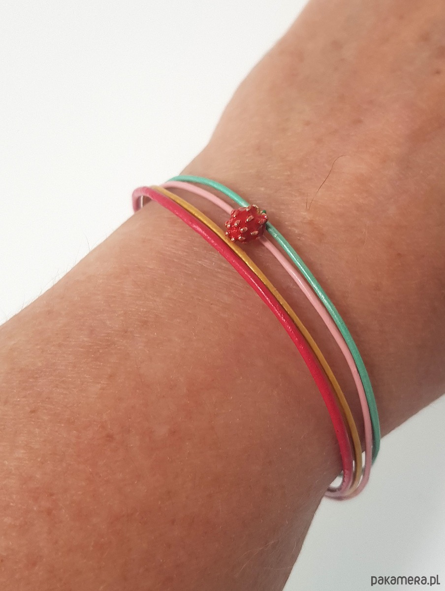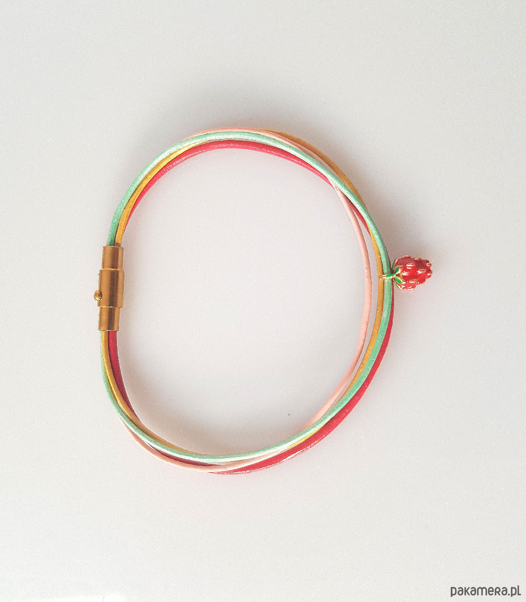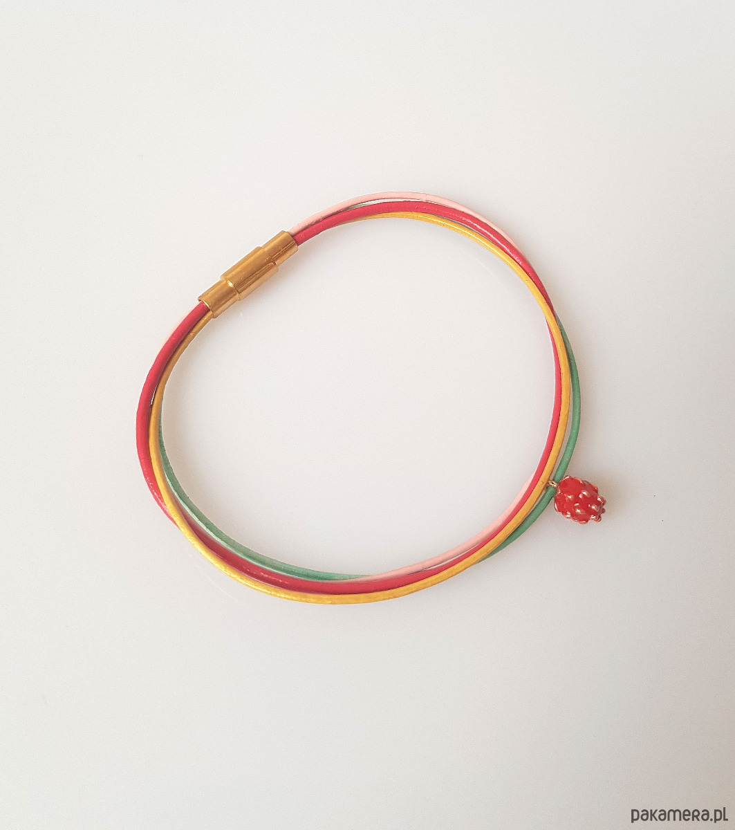 Delikatna, wesoła, kolorowa bransoleta z emaliowaną poziomką.