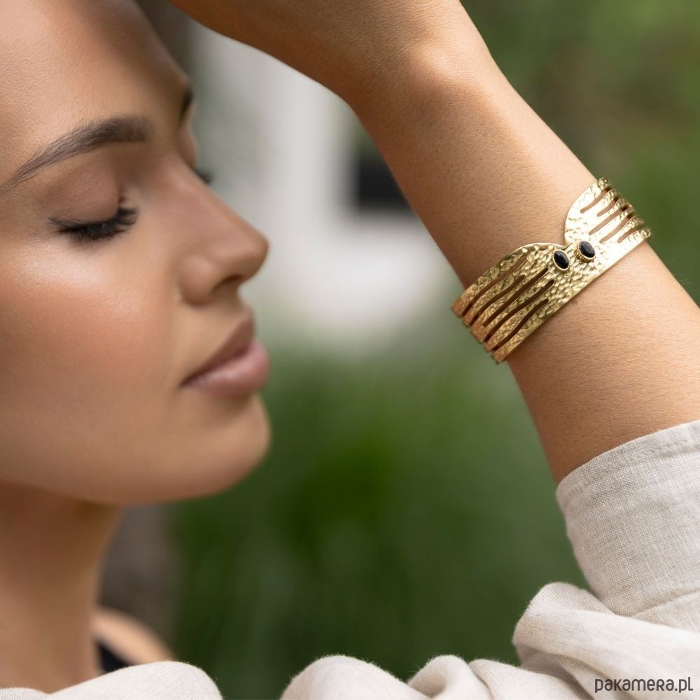 Poznaj naszą nowość! Karbowana, pozłacana bransoletkę z czarnymi guziczkami. Bransoletka jest regulowana, dzięki czemu dopasujesz ją idealnie pod obwód swojego nadgarstka. Jest bardzo efektowna i wygodna, podkreśli wiele Twoich stylizacji, tych codziennych i tych bardziej eleganckich.