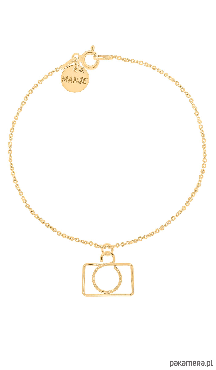 Srebrna bransoletka pozłacana z aparatem fotograficznym. Wykonana ze srebra próby 925, pokryta 24-karatowym złotem.