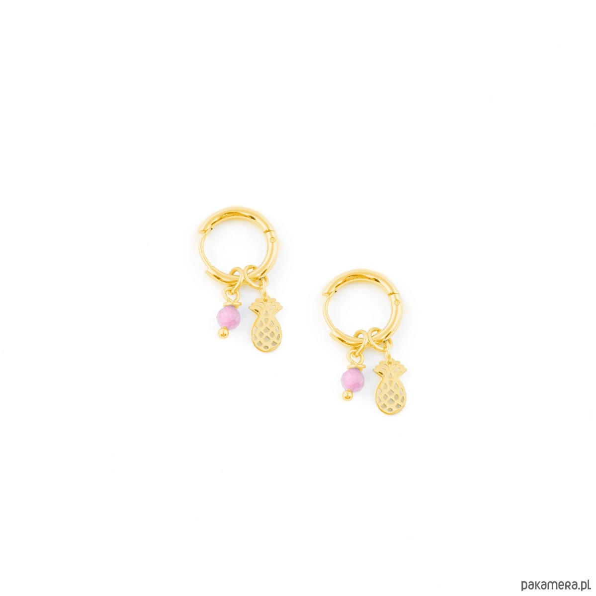 Poznaj nasze rajskie pozłacane kolczyki koła z zawieszkami w kształcie ananasa oraz różowego Turmalinu.Turmalin to kamień harmonii. Wycisza i harmonizuje, doprowadzając do pełnej równowagi drzemiące w nas emocje.