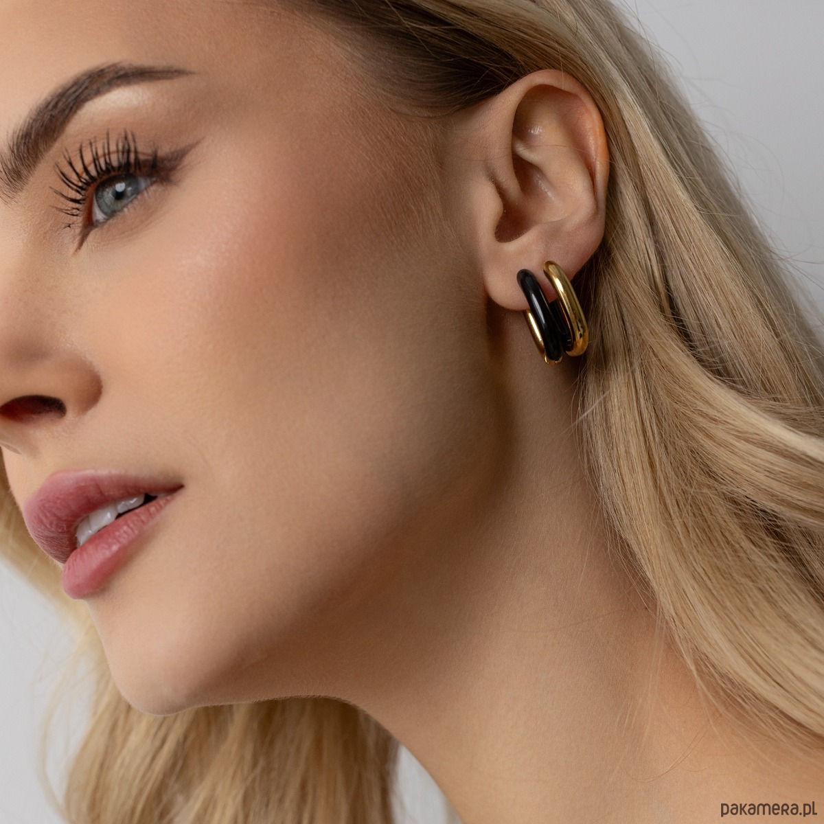 Model 2w1 daje możliwość noszenia kolczyków na dwa sposoby – czarną stroną do wewnątrz lub na zewnątrz ucha. W zależności od stylizacji możesz wyeksponować elegancką czerń lub subtelne złoto, uzyskując inny efekt wizualny bez potrzeby zmiany biżuterii.