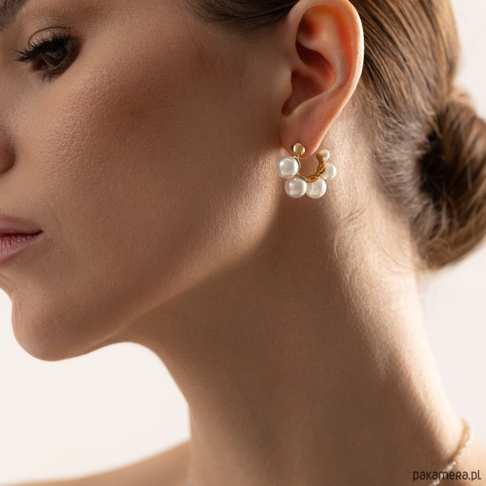 Subtelne kolczyki o lekkiej, półokrągłej formie, wykonane z Pereł, które zachwycają miękkim, naturalnym blaskiem. Połączenie pereł z pozłacanymi detalami tworzy harmonijną, kobiecą kompozycję o ponadczasowym charakterze.
