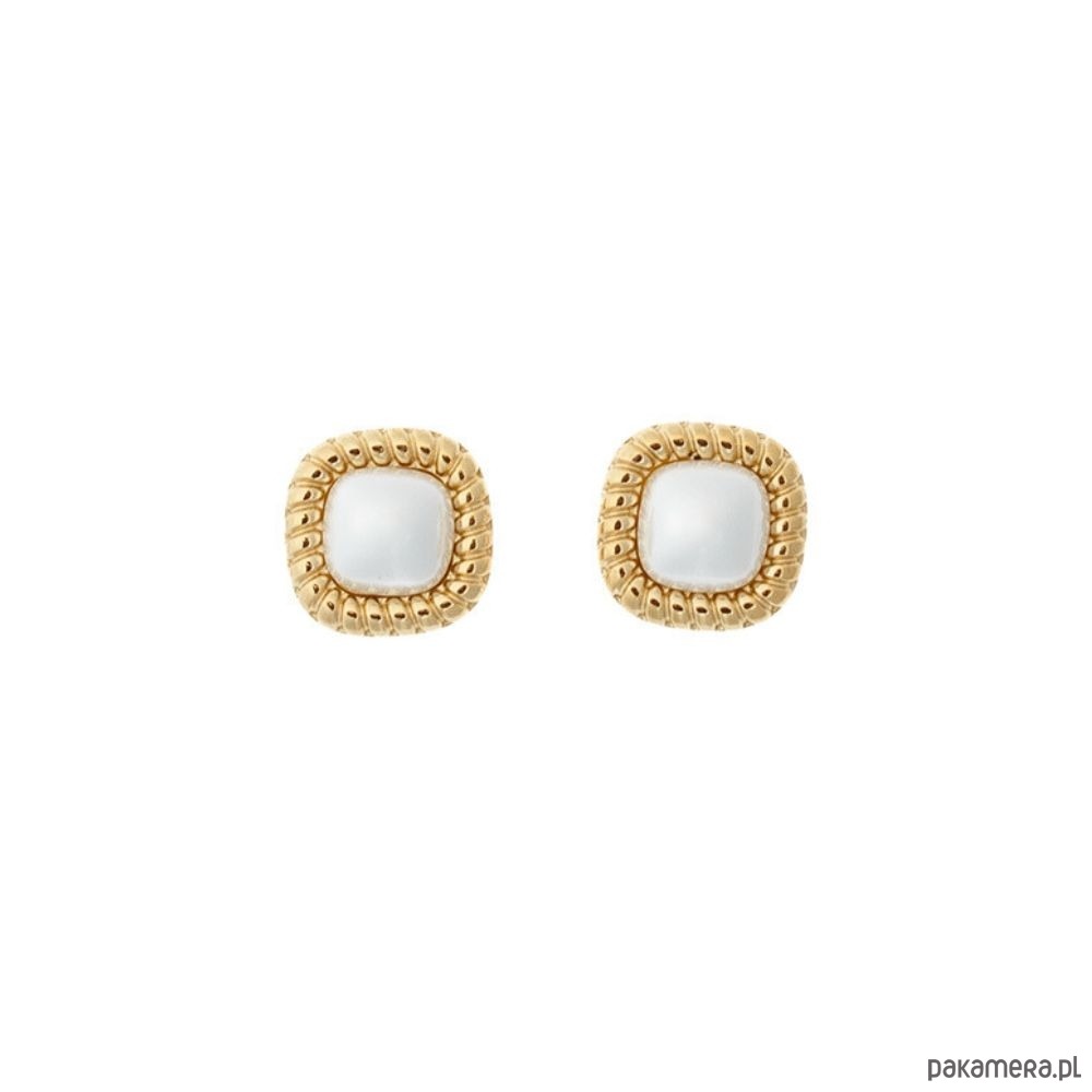 Subtelne kolczyki o regularnej, geometrycznej formie, ozdobione delikatnym perłowym oczkiem osadzonym w pozłacanej oprawie. Starannie wykończona rama nadaje całości eleganckiego charakteru, a miękki perłowy blask wprowadza nutę ponadczasowej klasy.