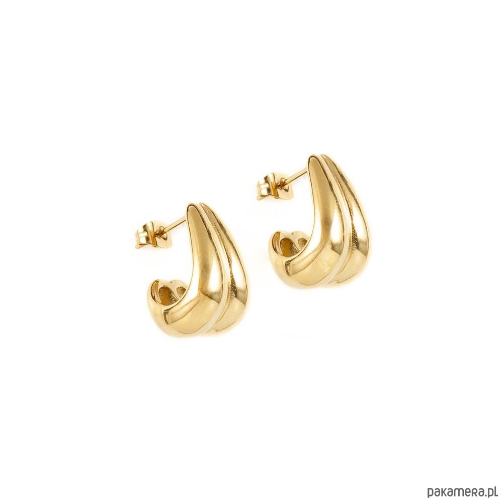 Te kolczyki to połączenie klasycznej formy i nowoczesnego designu. Wykonane z pozłacanej stali szlachetnej, zachwycają swoim miękkim, rzeźbiarskim kształtem, który subtelnie odbija światło, tworząc efekt eleganckiego połysku.