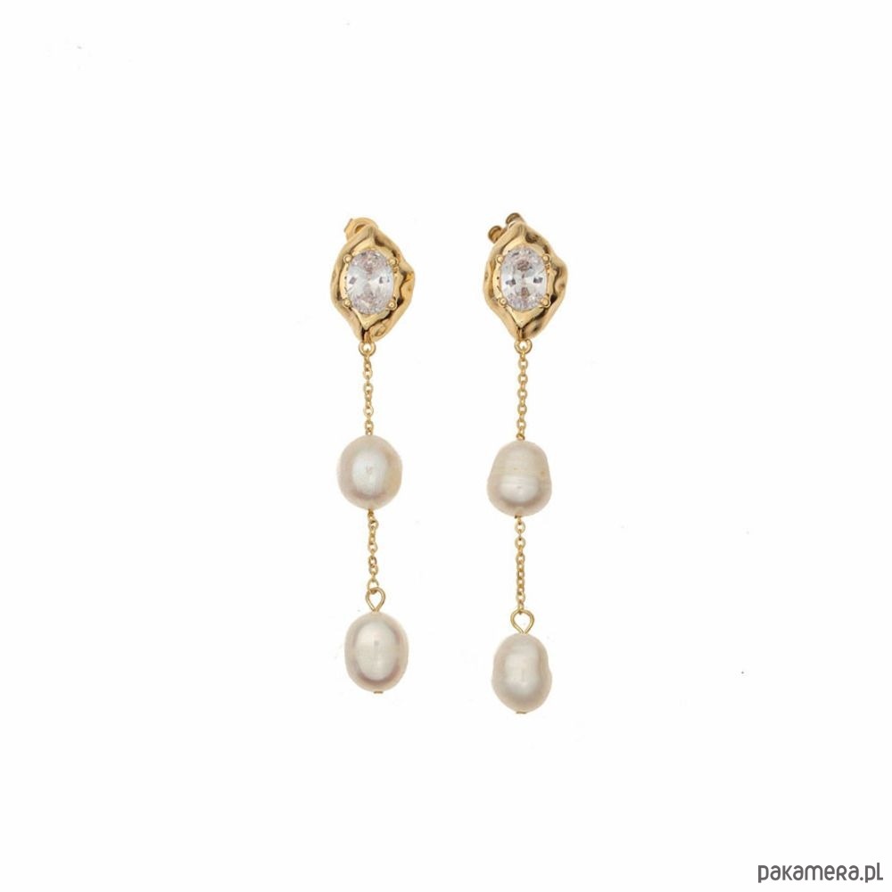 Vintage perłowa elegancja to kolczyki inspirowane klasyczną biżuterią dawnych lat, w której liczy się detal, forma i subtelny blask. Górna część kolczyków zdobiona jest delikatnym kryształem osadzonym w nieregularnej, złoconej oprawie, nawiązującej do stylu vintage. Całość dopełniają naturalne perły zawieszone na cienkim łańcuszku, które miękko poruszają się przy każdym ruchu.