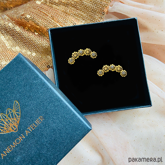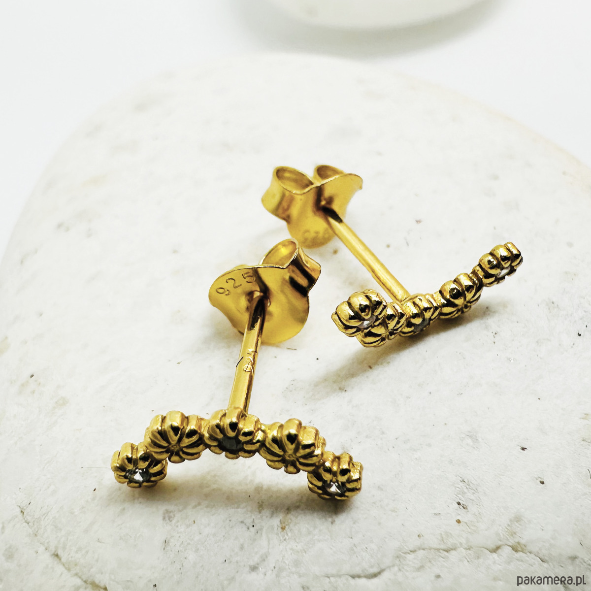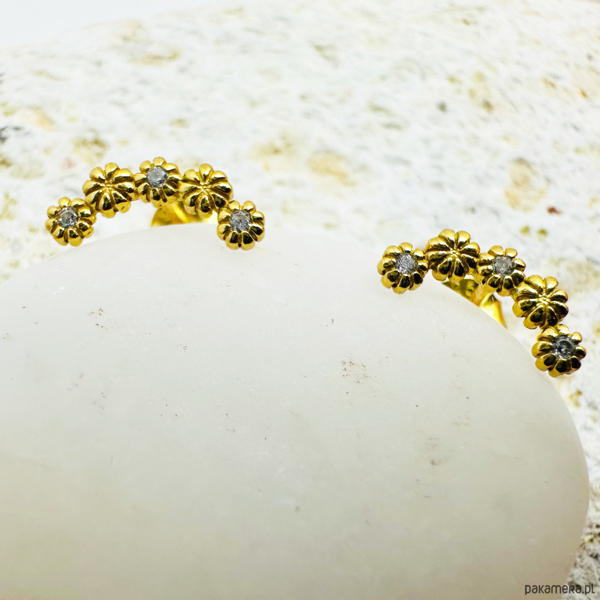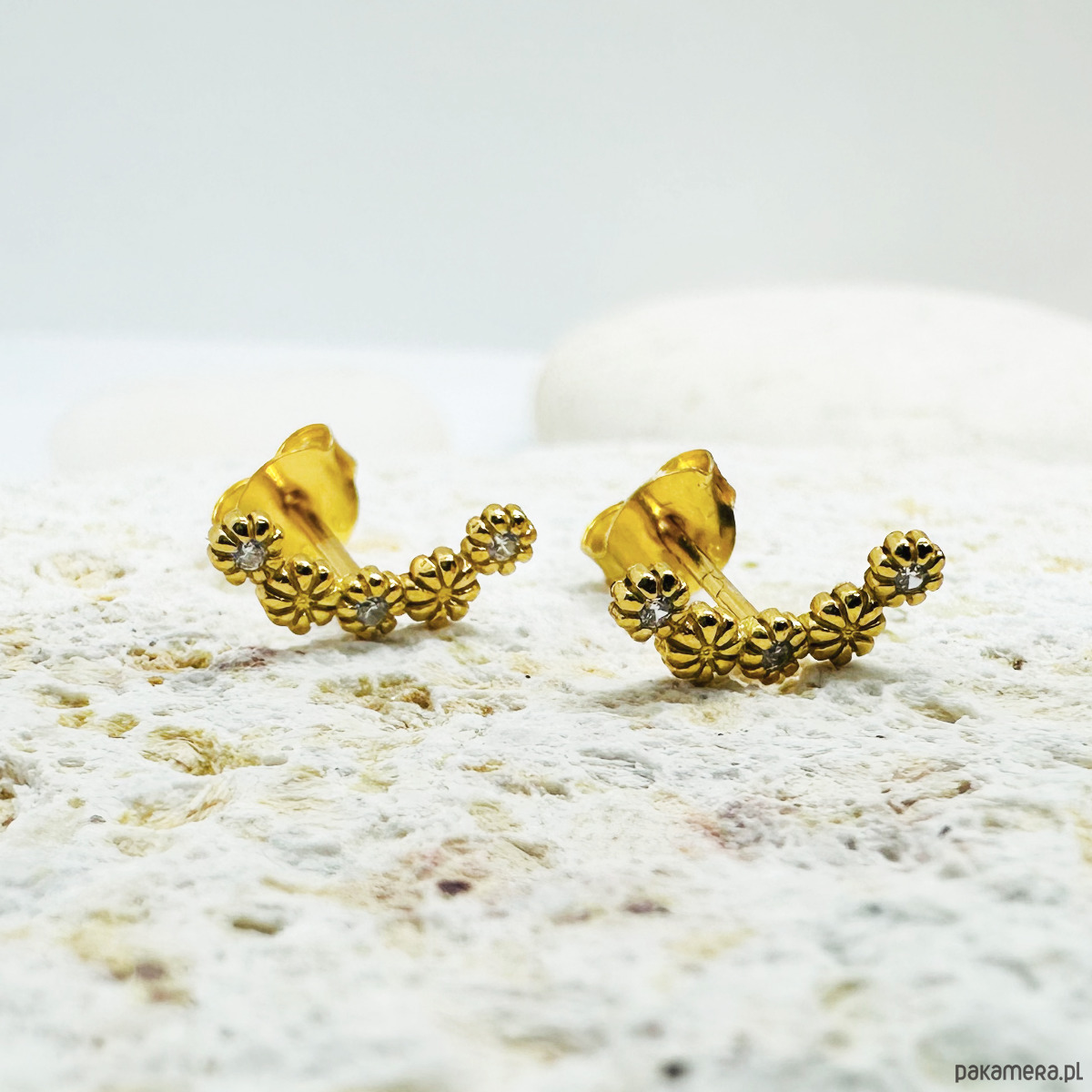 Pozłacane kolczyki z cyrkoniami, mini kwiatki sztyfty