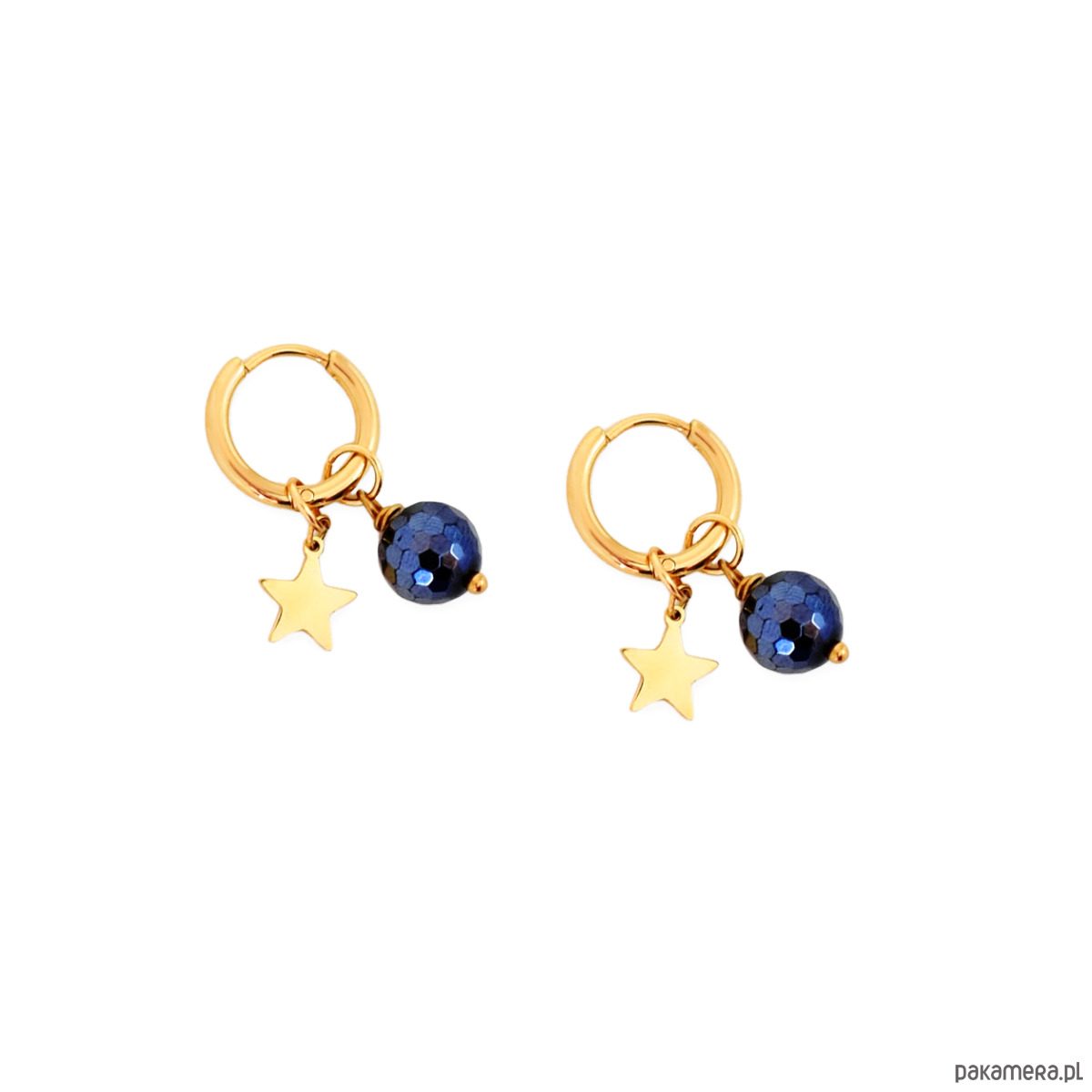 Pozłacane kolczyki z gwiazdką i granatowym Agatem 12mm