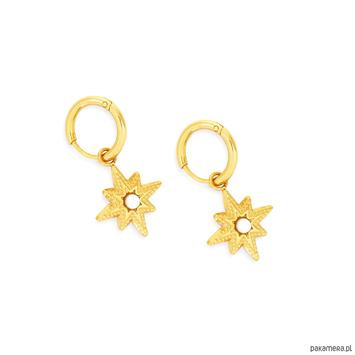 To kolczyki, które świetnie sprawdzą się zarówno w minimalistycznych stylizacjach, jak i jako drobny, efektowny akcent w wieczornej odsłonie. Delikatny kształt gwiazdki i złoty blask pięknie odbijają światło, dodając twarzy ciepła i elegancji.