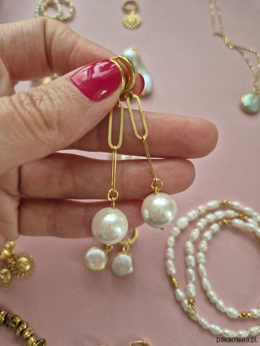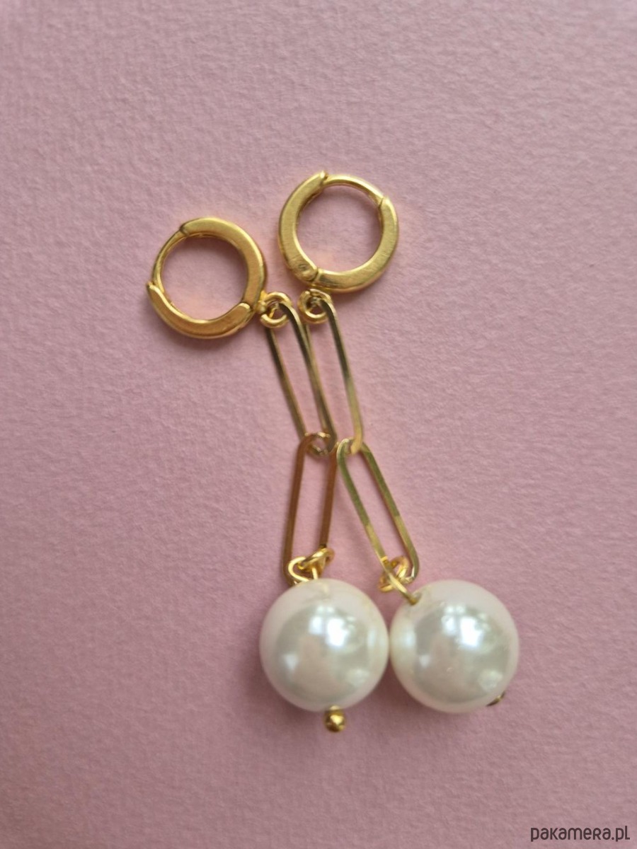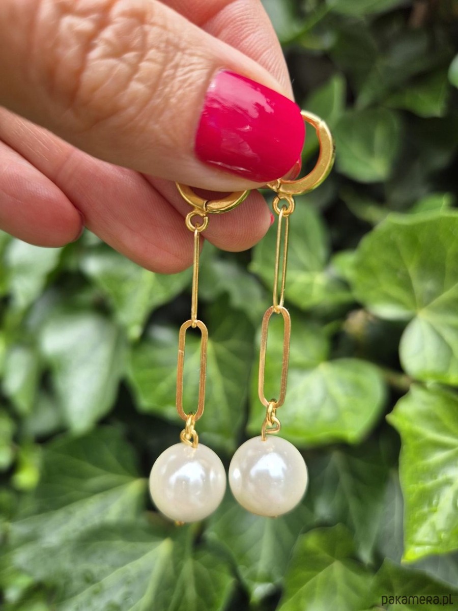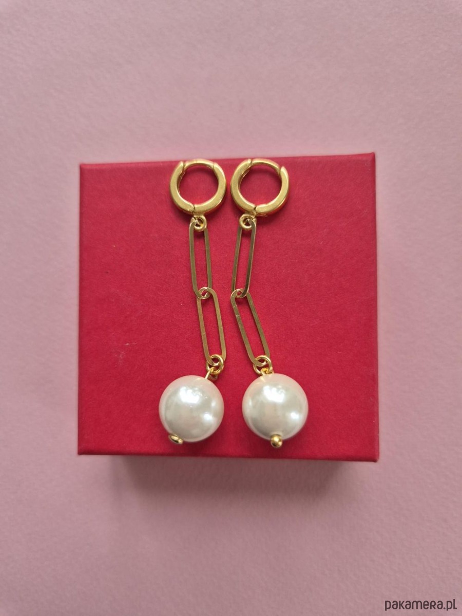 Pozłacane kolczyki z łańcuszkiem i okrągłą perłą shell