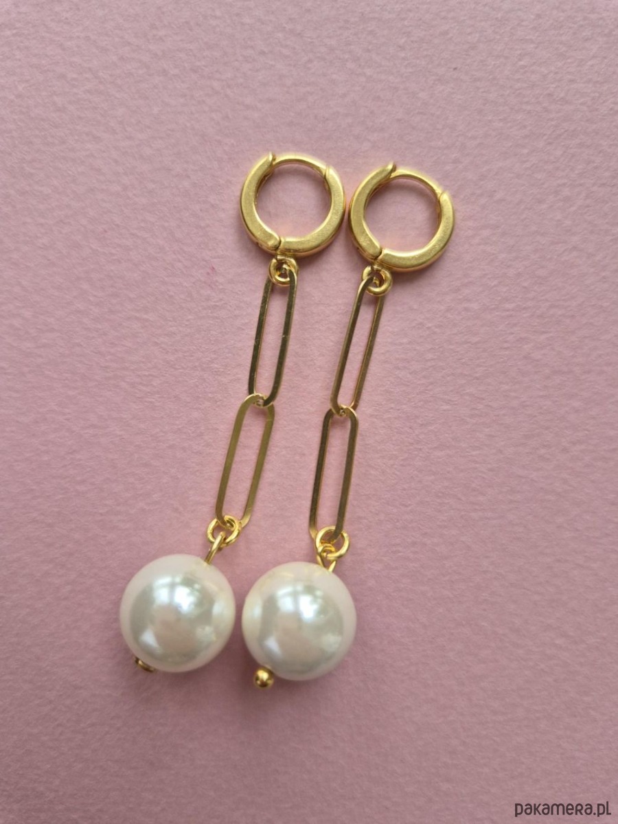 Długie kolczyki z pozłacanego srebra z grubym łańcuszkiem i okrągłą perłą shell to elegancka i subtelna biżuteria, która doda klasy każdej stylizacji. Perły seashell zostały zawieszone na biglach angielskich wykonanych ze srebra, pokrytego warstwą złota. Nowoczesne i zarazem efektowne – idealne zarówno na co dzień, jak i na wyjątkowe okazje.