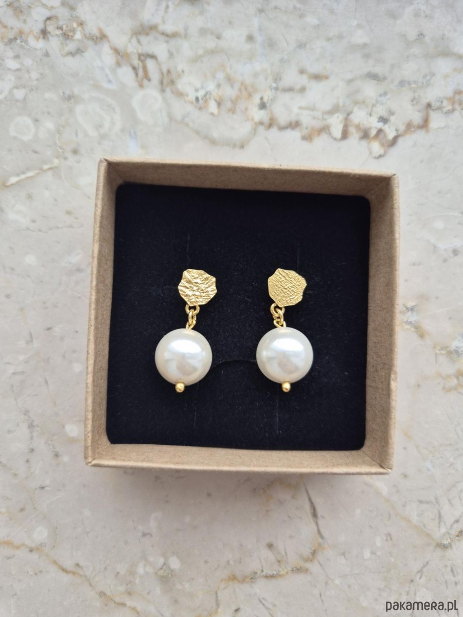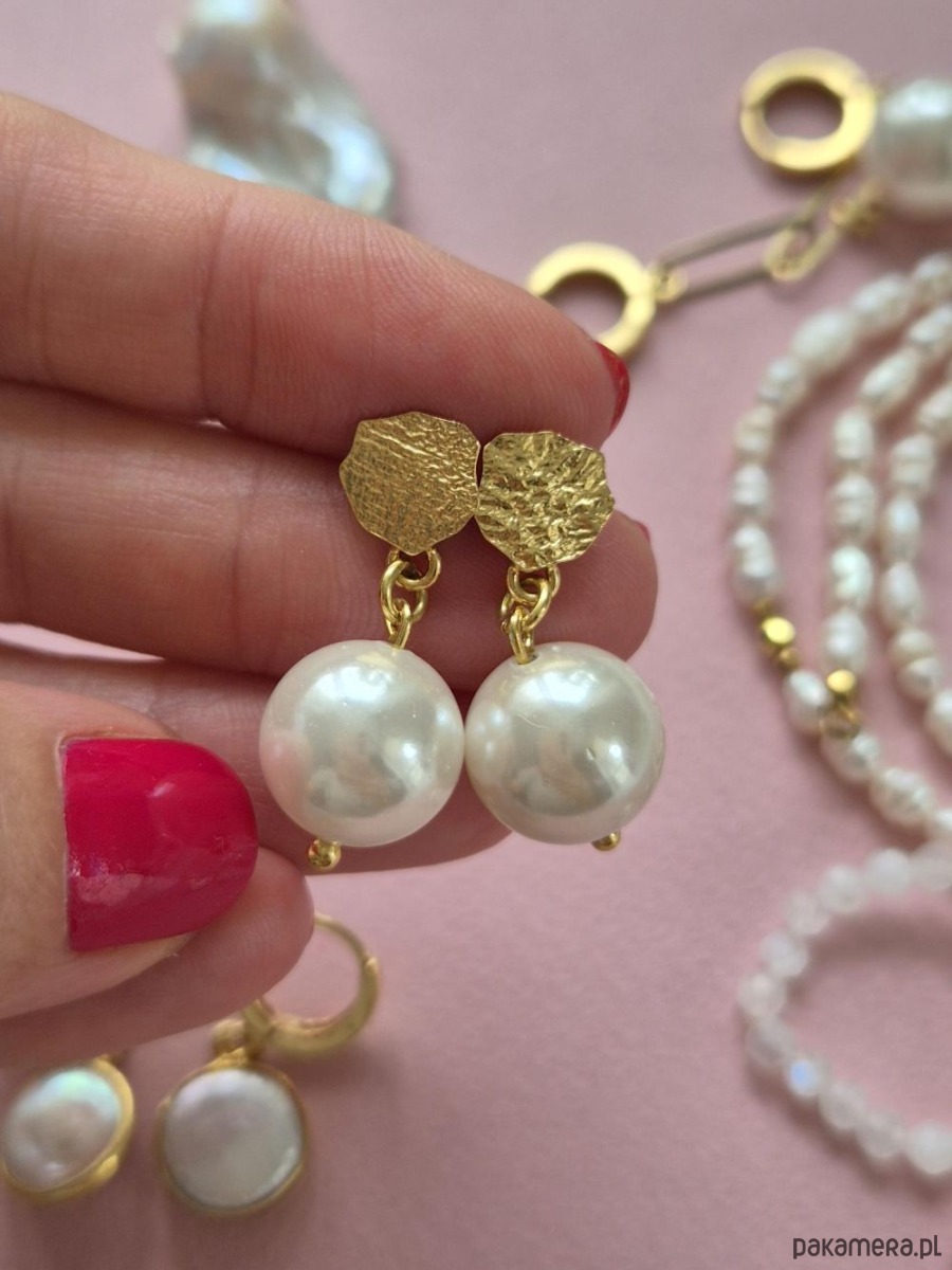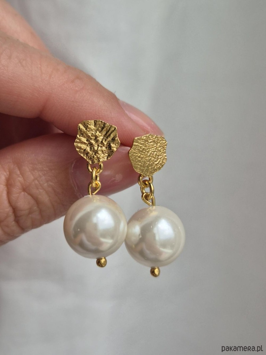 Kolczyki z pozłacanego srebra z okrągłą perłą shell to elegancka i subtelna biżuteria, która doda klasy każdej stylizacji. Perły o pięknym, kremowym połysku zostały zawieszone na unikatowych biglach wykonanych z gniecionego srebra, pokrytego warstwą złota. Delikatne, a zarazem efektowne – idealne zarówno na co dzień, jak i na wyjątkowe okazje.