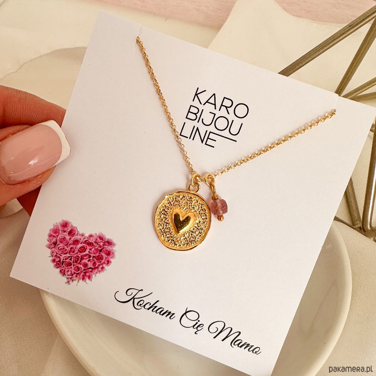 Piękny, delikatny naszyjnik z fakturowanym medalionem w kształcie serca i naturalnym kamieniem dobranym z myślą o Mamie. To wyjątkowy talizman wdzięczności, bliskości i opiekuńczej energii.