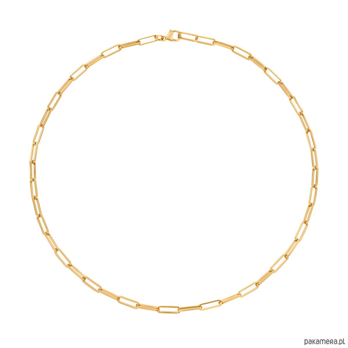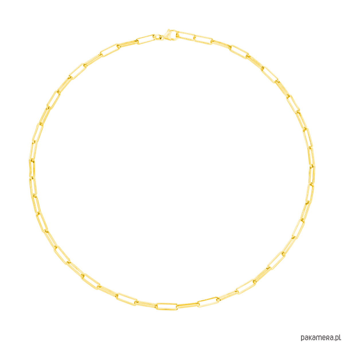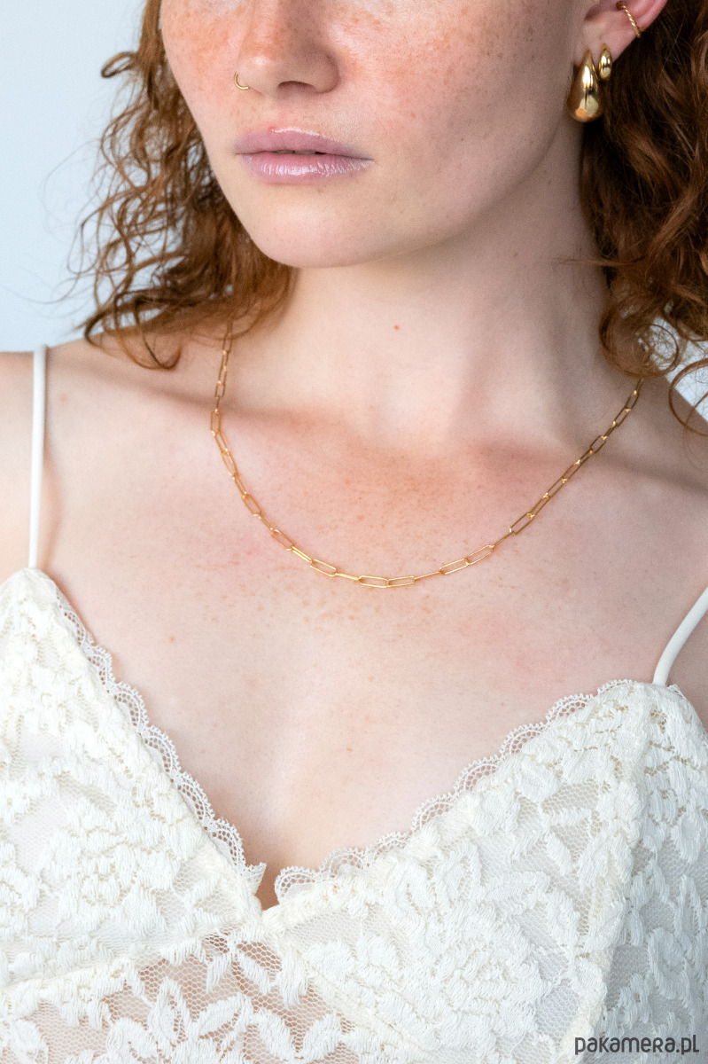 Stylowy naszyjnik o strukturze dużych, pozłacanych ogniw w kształcie spinaczy to biżuteria, która daje pełną swobodę stylizacji. Dzięki możliwości zapięcia w dowolnym miejscu, możesz nosić go na wiele sposobów – jako krótki choker, klasyczny naszyjnik lub efektowną bransoletkę. Jego nowoczesny design i ciepły blask złota dodadzą charakteru zarówno codziennym, jak i eleganckim zestawom.