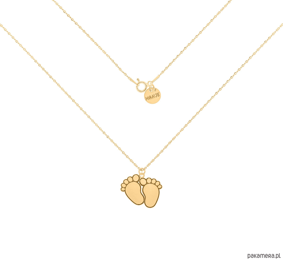 Srebrny naszyjnik pozłacany z dwiema stópkami. Wykonany ze srebra próby 925, pokryty 24-karatowym złotem.
